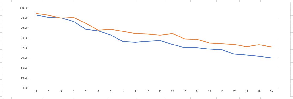 Myslím že to není zatím vůbec špatné. Škoda že do těch posledních měření promluvily teploty ( myslím že to je vidět v tom jak křivka opotřebení Samsungu lehce stoupla), počkáme na další průběh... Jsem napnutý...