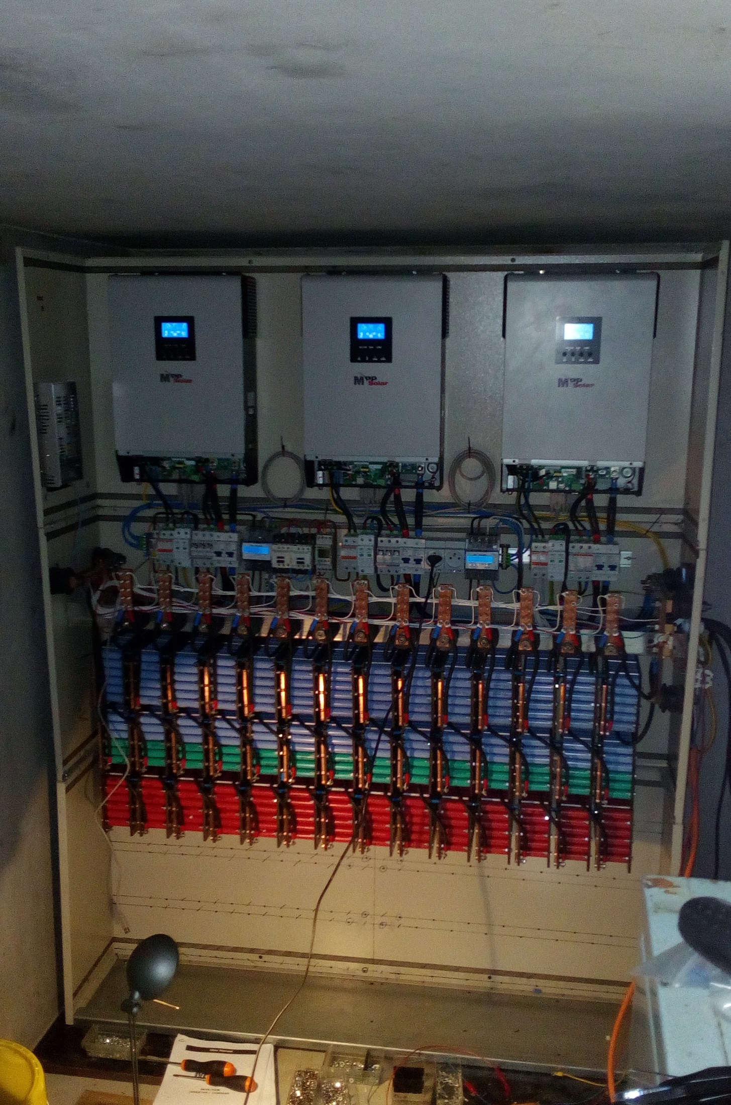 3,6kWp GWL Poly + 8,82kWp Canadian Mono, 3x PIP4048MS, 5x80P14S = 5600Cells 18650 (~900Ah/47kWh)