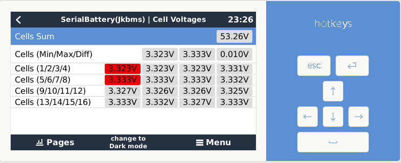 mam dve sady, dve jk, victron. Taky jsem to chtel do victronu zapojit ale pak jsem to vzdal. Presne jak pises zatim nemaji hotove rizeni podle vic bms. Pry na tom nejak delaj ale kdo vi. Kdyz bych to chtel dobre, musel bych si asi udelat nejakej wraper co to obali a posle jednu bms jako celek. Lepsi mi prijde vycitat si bms vedle do HA a pripadne ridit venus/cerbo z ha. Treba po mqtt nastavit pres dvcc proud, to by snad melo jit. Krome omezeni proudu nebo vypnuti nabijeni nevim co by to jinak mohlo pomoct. Monitoring, notifikace a grafy pak mam v HA. Je to pohodlnejsi nez ta victroni cesta.
