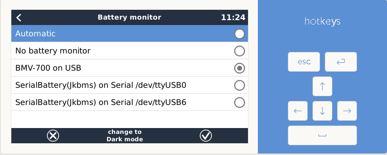 4. Jakmile VICTRON našel JK-BMS, hned začal podle JK-BMS monitorovat baterii jako celek. Ale v nastavení lze zařídit, aby se vrátil k Batery Monitor na BMV-700. 5. Dvakrát se mi stalo, že komunikace vypadla, to zatím přičítám tomu USB kabelu.