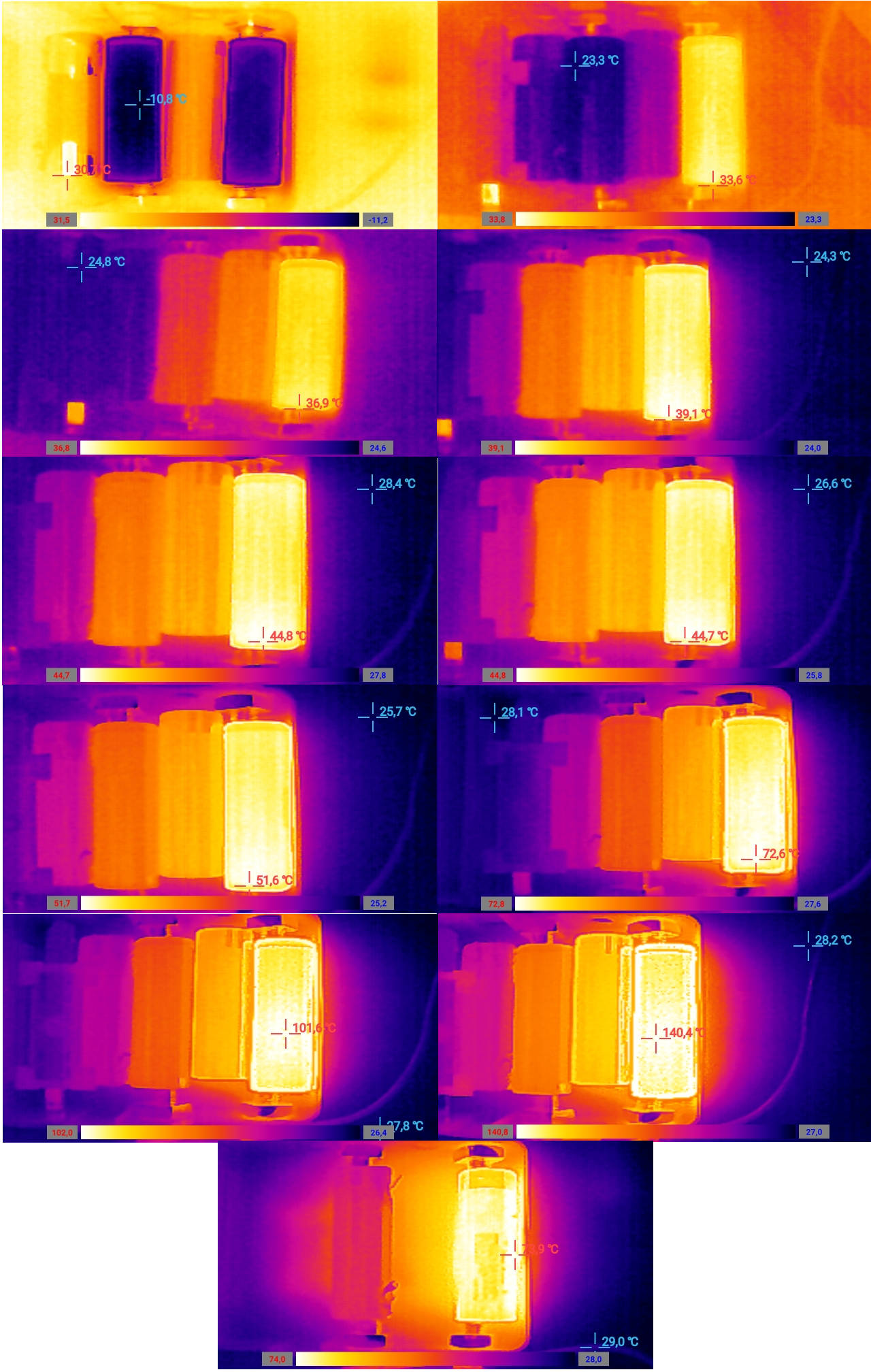 Posledný obrázok zobrazuje teplotu susedných článkov Panasonic / 73.9 *C /,