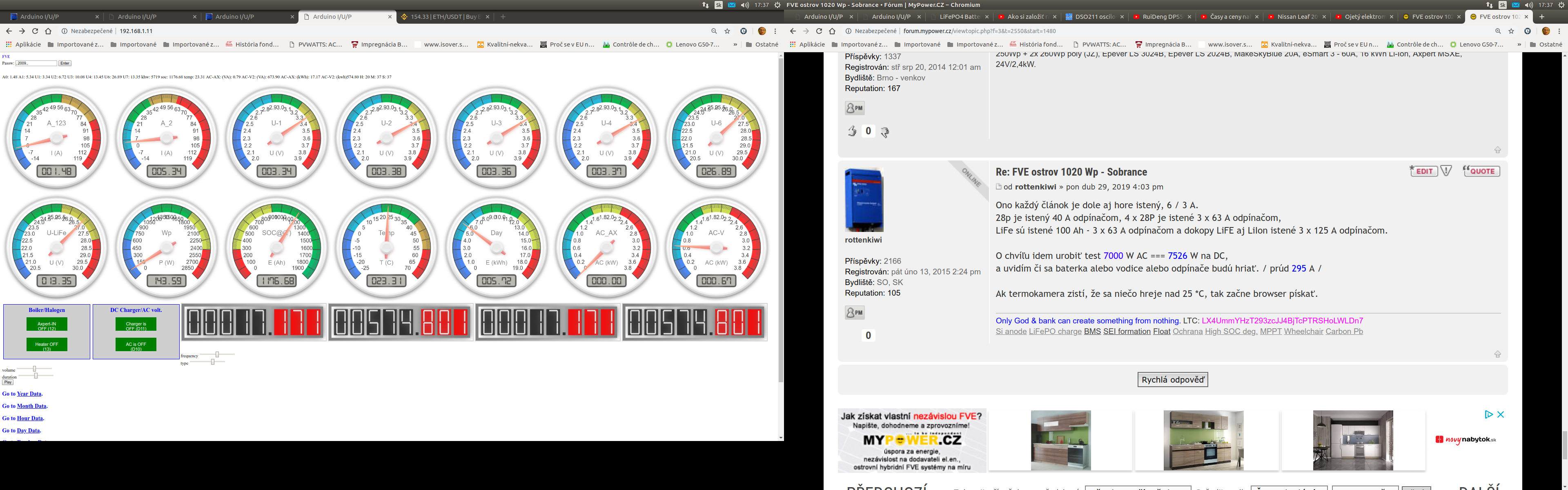 Téma popisuje zkušenosti s provozem ostrovní fotovoltaické elektrárny o výkonu 1020 Wp v Sobrancích. Autor sdílí detaily o komponentách systému, jako jsou panely, baterie, regulátory a měřicí zařízení založená na Arduinu. Součástí je i ochrana proti přepětí a statistiky výroby energie od roku 2014. Diskuze zahrnuje i otázky kompatibility měničů Victron a technické aspekty spolehlivosti komponent.