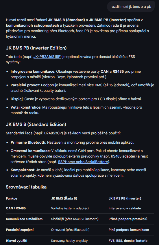 Pitvat jsem to chtel jen ze zvedavosti, vymeni se za novou ale zajima me proc a kolik fetu odeslo ze zustali pruchozi. Na Victronech lita to napeti ale jen u PB verzi u rodicu mam B verzi a tam napeti nelita takze neco osidily na PB verzi.gupa píše: stř dub 15, 2026 8:09 pmCo ej důvodem pitvy a hledání chyb na BMS? Pokud chápu diskuzi, tak to dělá jen na Victronech. Takže jestli to nedělá na jiném měniči, tak proč hledat chybu na BMS?