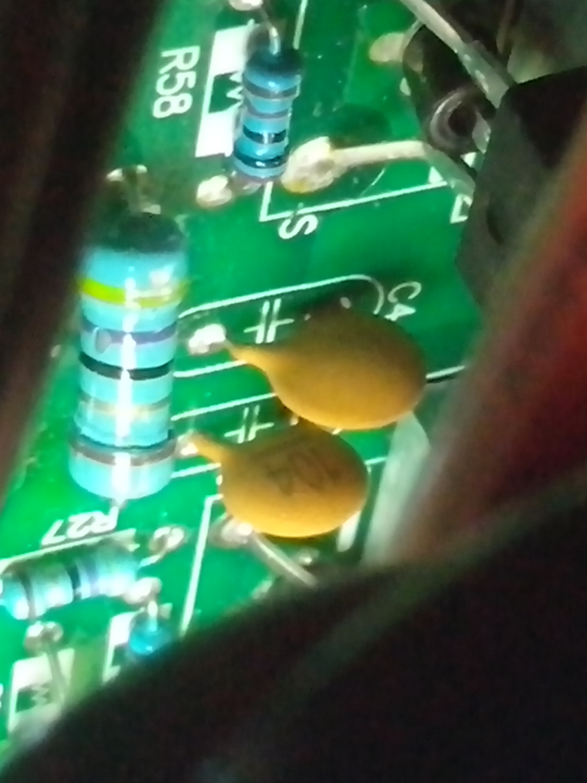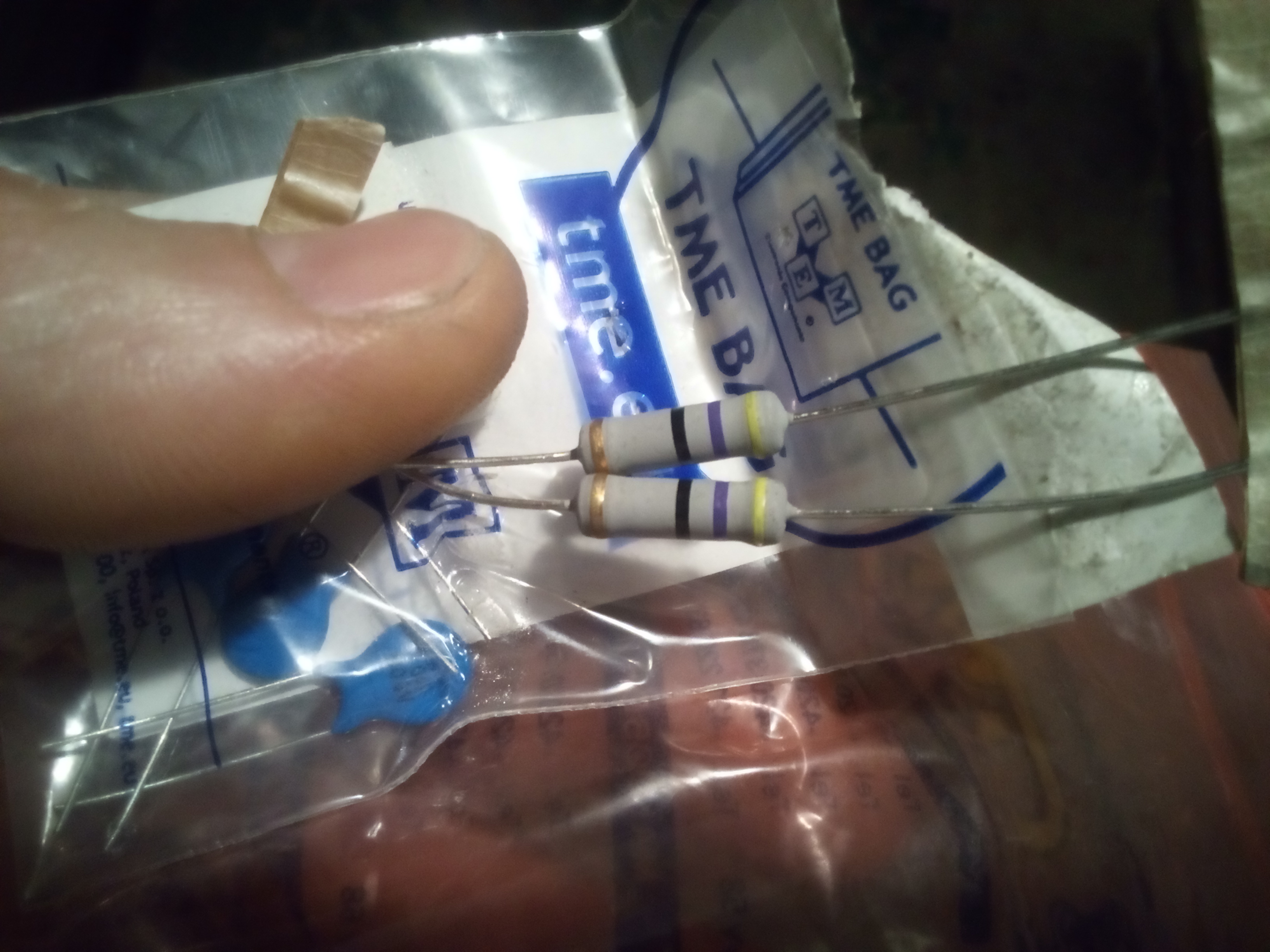 Odpory, jestli z fotky dobře vidím, jsou 1W 4R7, kondenzátory 100n?!