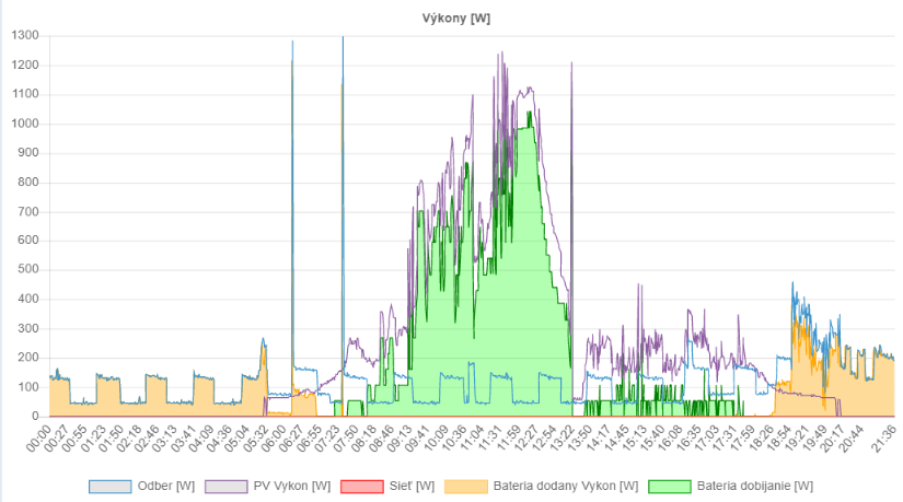 Pouziva to Chart.js a krmim to cez JSON udajmi z databazy. Mam aj kumulovane denne vykony aj tyzdenne ale na viac uz nezostalo casu. Tie pravidelne zuby to je chladnicka.