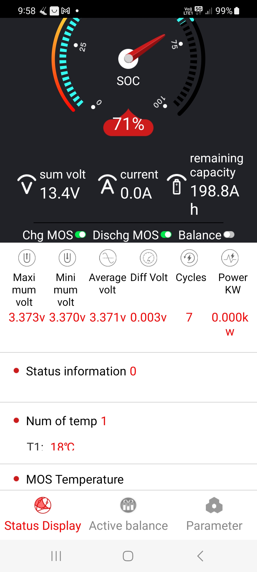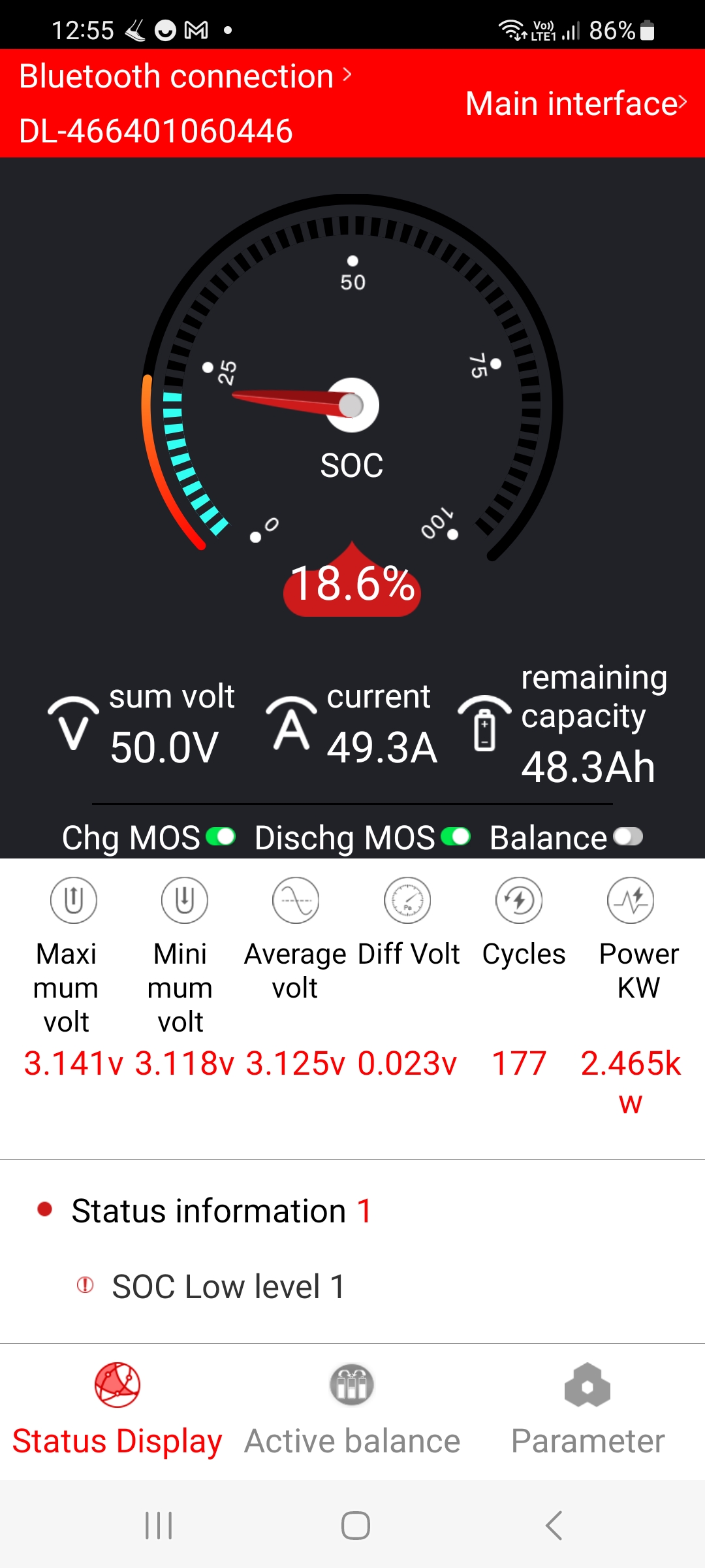Před cca 18měsíci jsem uvedl do chodu baterie 16S od Litokaly za cca 1500USD.Teď jsem z důvodu spojení s gelovkama přikoupil od Mivvy 2články 130Ah,ty jsem zapojil pararelně a přidal jako 17článek (260Ah)bez BMS.