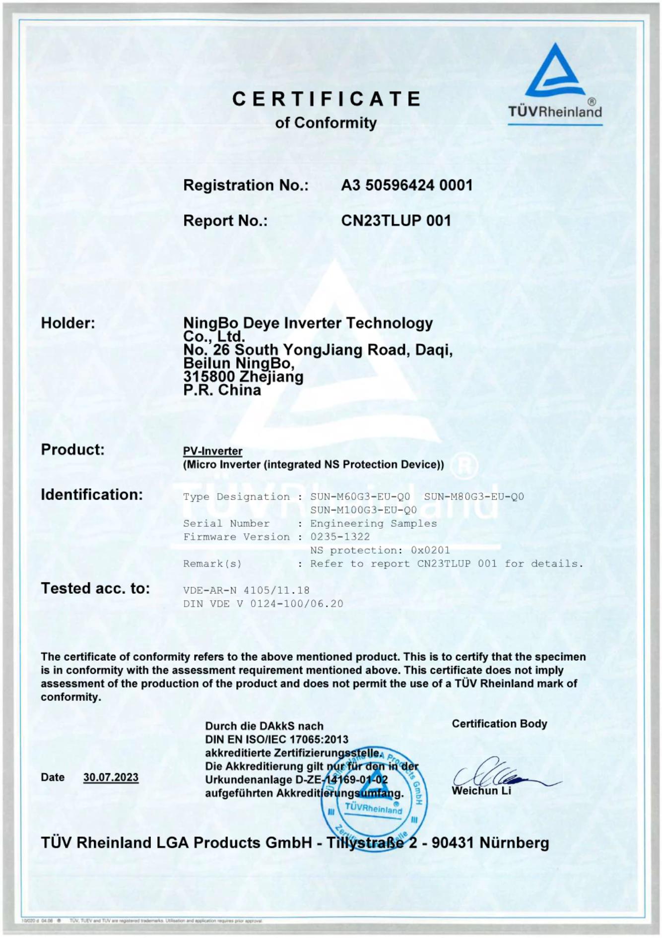Deye Mikroinverter + Externi Box (relátko) dostal certifikaci.