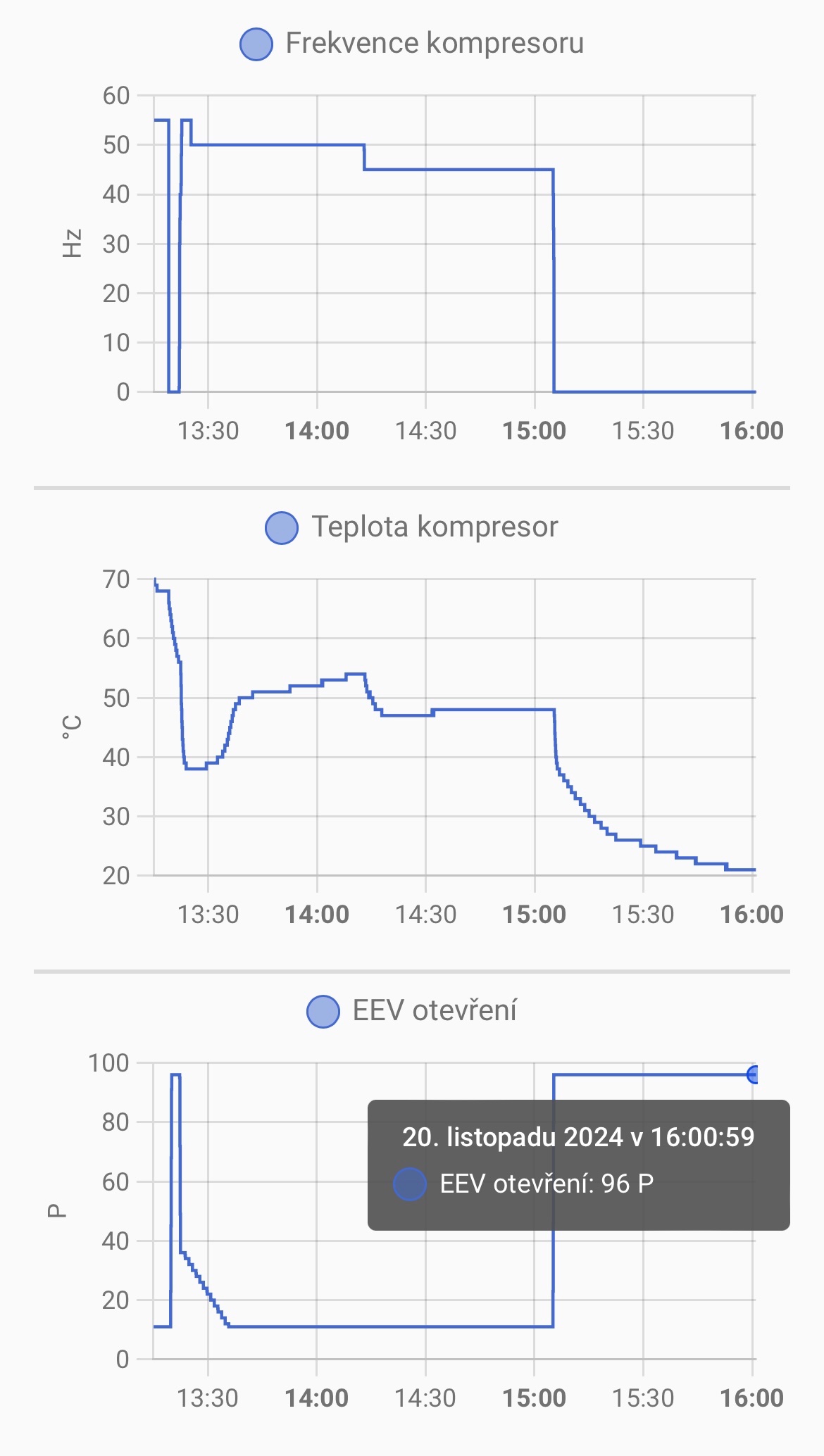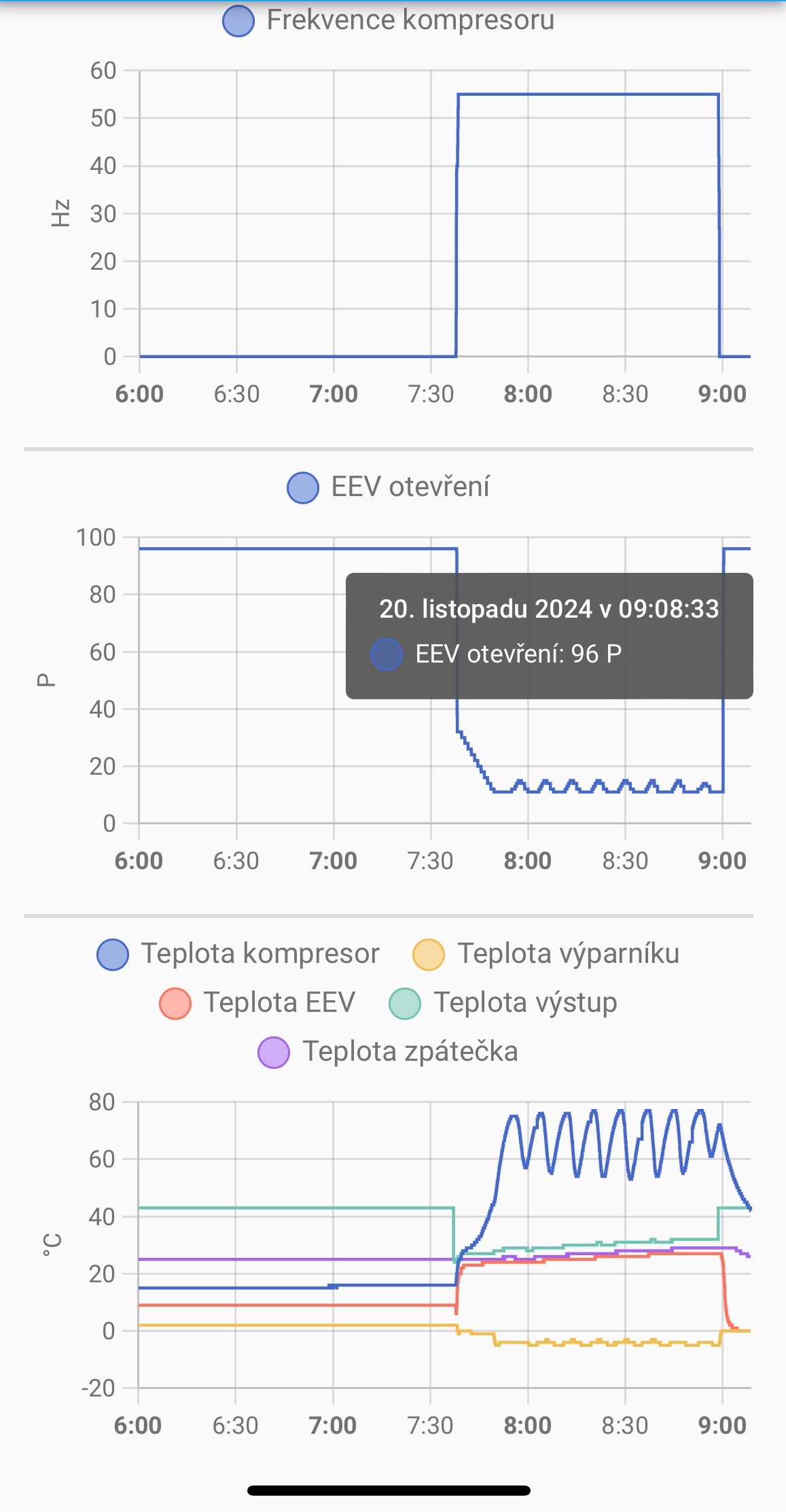 Me to drzelo teplotu viz graf takze podle me nebyl tlak proto nevyjela teplota kompresoruFranta2776 píše: stř lis 20, 2024 4:58 pmTak já jsem na 11 a 52Hz TUV bez problémů natopil na 44st.Teplotu výtlaku to drželo celou dobu okolo 75st.