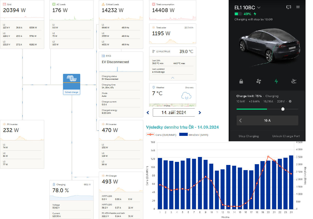 Určitě, vyplatí se vždy. Fungovat ti to ale nebude v případě, že potřebuješ topit 20hodin denně v kuse... Mám to nastaveno, tak, že prostě v době nízké ceny topím, navřívám, nabíjím a v době vysoké ceny tyto činnosti nedělám pokud nemusím. A abych se tim nemusel zabývat, stačí nastavit scheduled charging v autě a ve Victronu. A existuji i relátka, která sama podle ceny sepnopu na třeba 3 nejlevnější hodiny každý den.camel1cz píše: sob zář 14, 2024 12:57 pmNe by v téhle souvislosti zajímalo, jestli někdo tady spočítal reálnou výhodnost spotu, když elektřinou topím a v zimě potřebuju zhruba 1,5 MWh s tím, že prakticky nejsem schopný se vyhýbat zimním špičkám ceny elektřiny.