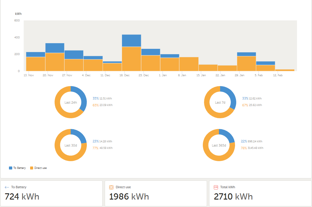 Na tomto grafu jsou data z naší instalace. V tom sloupcovém grafu je modrou vyznačeno množství EE z Distribuční soustavy, krerá šla do baterek. Mno a u nás musí být rozdíl ceny min 40%, jinak do toho nejdu...