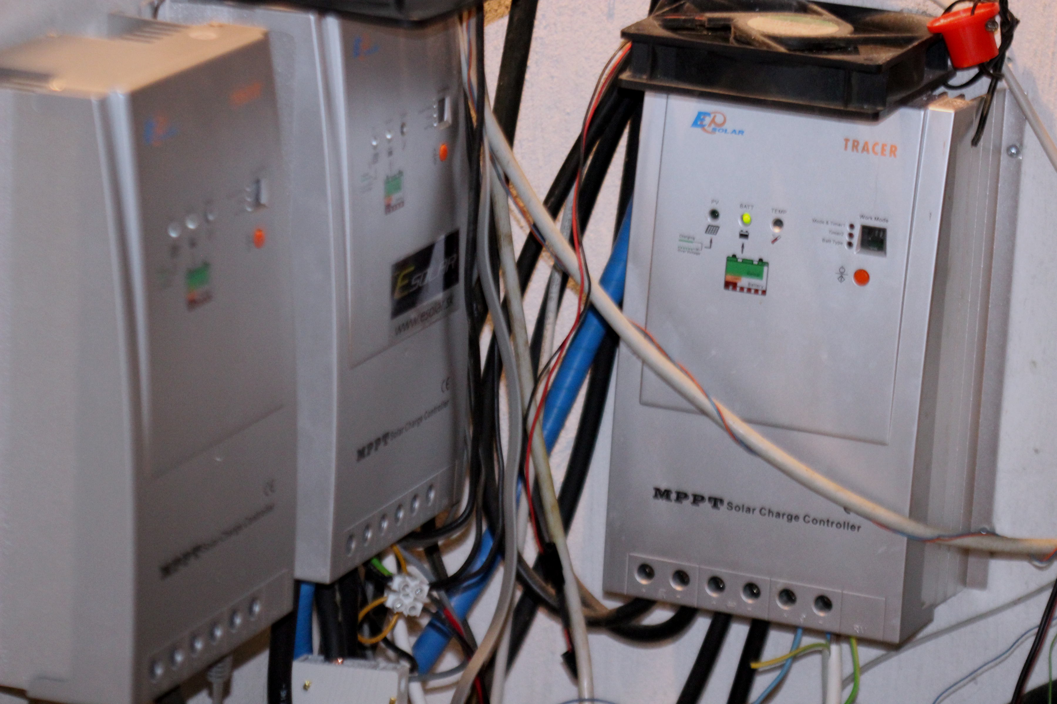 24x Solární panel JINKO SOLAR 225 Pmpp=225W, 2x Regulátor STUDER VT-80, 2x Střídač Studer XTM 4000-48, BSP, RCC, 1x AKU 48V LFP200Ah 1x AKU 48 V LFP280Ah. Řizení a dohled, SDS, vlastní vyčítání arduinem DUE v krabičce (ARMOSY), export dat do RPi s databází a html stránkou.