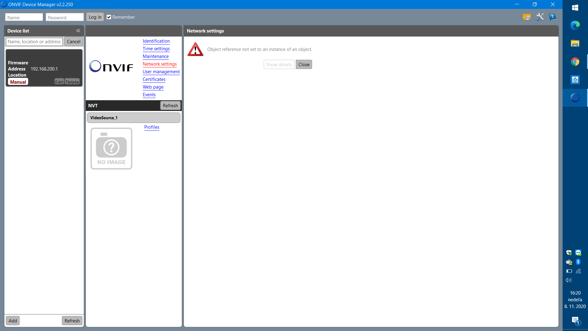 tvári sa že to onvif vie ale pri nastavení sieti hodí totomarsal64 píše:Divné, co je to za typ? Neumí to tedy opravdu https://sourceforge.net/projects/onvifdm/ ? Já si nastavuji pro kamery vždy pevnou IP.