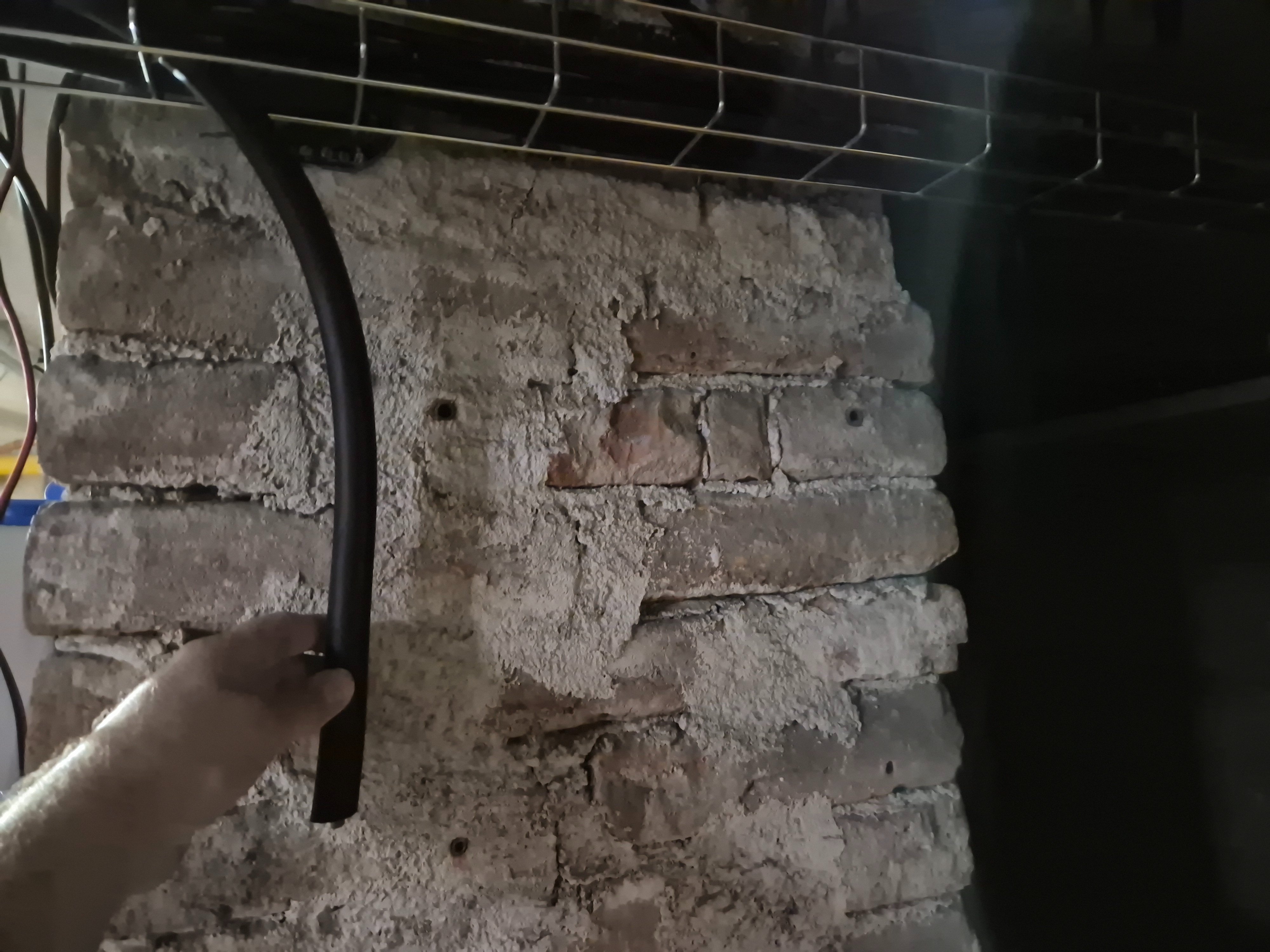 Nn, neni to komin, ale zed mezi plynovym kotlem vlevo a kotlem na tuha paliva (co se nepouzil 20 let) vpravo. Puvodne jsem to chtel jinam, ale nakonec to neni tak spatne misto, protoze mi staci odstehovat jednu starou skrin naproti tomuhle, a bude tam i velice slusny pruchod. Nastesti to takto vyjde do leveho horniho rohu rozvadece, tak to pujde rovnou na svorky.