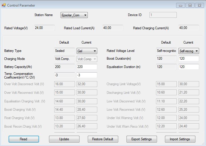 U mého měniče je default kdy se přepíná na bypass napětí 23V a kdy se měnič vypne natvrdo nastaveno na 21V, a kdy se to zase přepíná na měnič je nastveno na 27V.