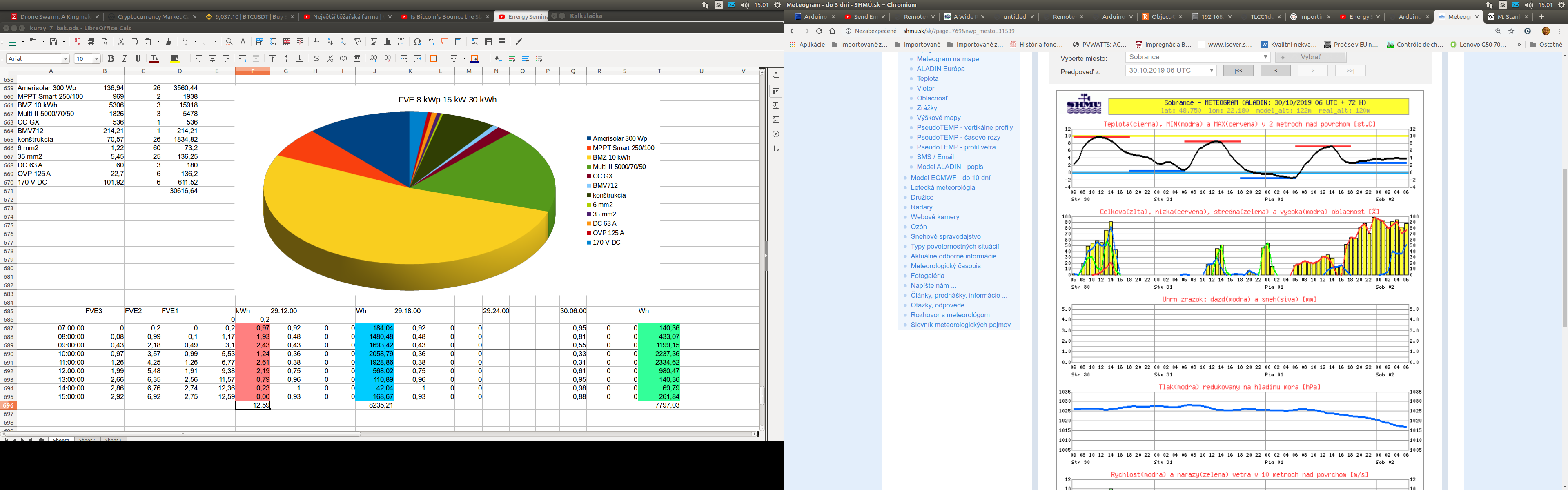 Téma popisuje zkušenosti s provozem ostrovní fotovoltaické elektrárny o výkonu 1020 Wp v Sobrancích. Autor sdílí detaily o komponentách systému, jako jsou panely, baterie, regulátory a měřicí zařízení založená na Arduinu. Součástí je i ochrana proti přepětí a statistiky výroby energie od roku 2014. Diskuze zahrnuje i otázky kompatibility měničů Victron a technické aspekty spolehlivosti komponent.