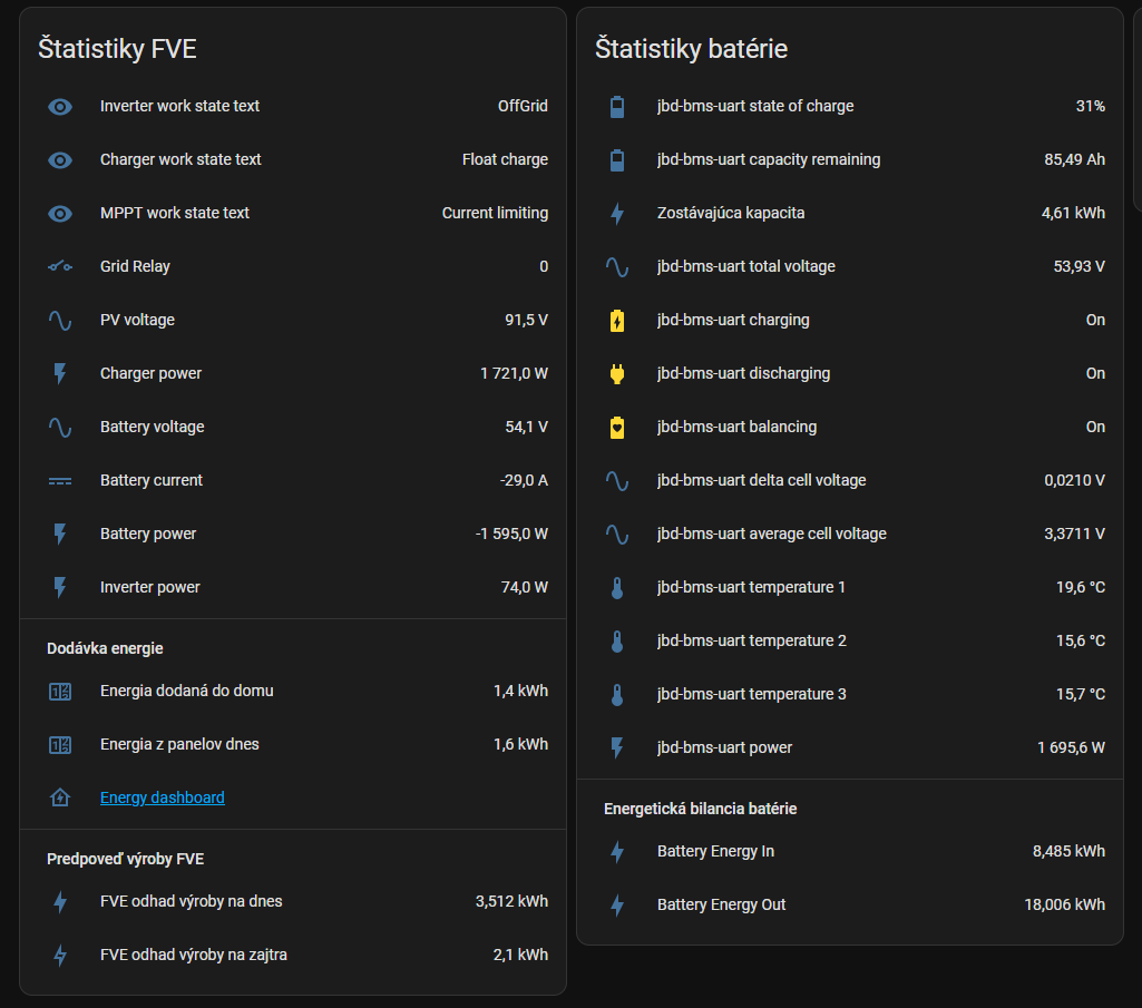 SuperTomHC píše:Tak už to krásne funguje aj cez ESP8266, aktuálne má menič aj BMS vlastné ESP8266, ale neskôr to skonsolidujem do jedného (možno). Díky za nakopnutie tRp