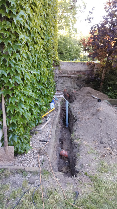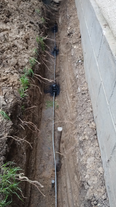 Ahoj, drážka je teď 50-55 pod terénem, ale ve finále se bude trochu zvyšovat, tak o 10cm. Tyče jsou jednak pozink coulové trubky se zmáčklou, zavařenou a nabroušenou špičkou v délce 150 (140 zatlučené) a mezi nimi na střídačku ještě nerez 16-ka kulatina v délce metr. Jsou cca metr od sebe, takže na štítové straně jich je celkem 7. Pásek zasypu ještě bentonitem a celé je to v dost slušném jílu, tak snad to bude fungovat. U druhého štítu bude +- to samé a tyhle dvě instalace budou spojené 10 FeZn drátem a asi ještě pár tyčema. Teď už zase chčije, ale hned jak to dobastlím, tak se bude měřit, jsem fakt zvědavý kolik to ukáže. Teda jako ale zabouchat ty stopadesátky trubky v drážce, to byl fakt tělocvik