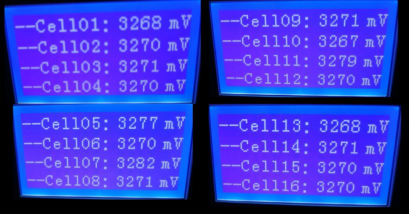 Soban píše:Začal bych nastavením v měniči aby přestal baterku vybíjet při 3.1V na článek a nabíjení nastavit na 3.4V a v BMS zapnout balancing od 3.37V a nějakou dobu to tak nechat.Marty píše:Budou to ty rozjeté články, kor článek 10 a 15 mi dělá starosti viz. přílohaDoufám že to BMS srovná...
