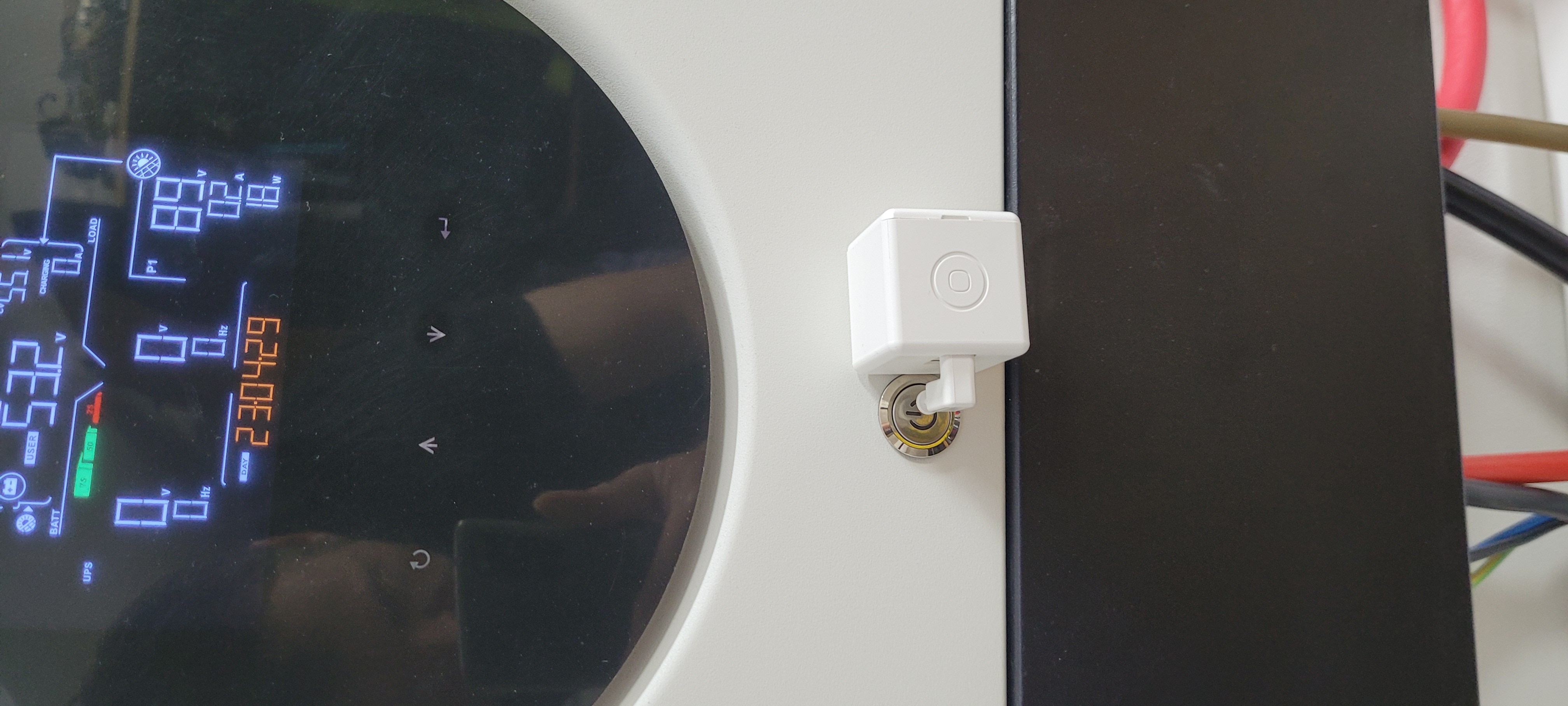Mam Axpert max 2, 10kW a bohuzel verzi s novym DSP tzn firmware verze 82.01 - nikdo jeste nema original FW tim padem neexistuje patch verze na muj model(resil jsem jiz na powerforu s Coulombem a nic). Kdyz je axpert zaseknuty na 90V ale proud je jiz na a vice 0.5A alespon z jednoho stringu tak si pomaham ze menic rucne vypnu a opet zapnu a v ten okamzik MPPT nabehnou na plny vykon. Pomohl jsem si tak ze jsem na menic dal fingerbota a pres zigbee ovladam vzdalene viz foto. Je to sice prasacky workaround ale lepsi nez nic.