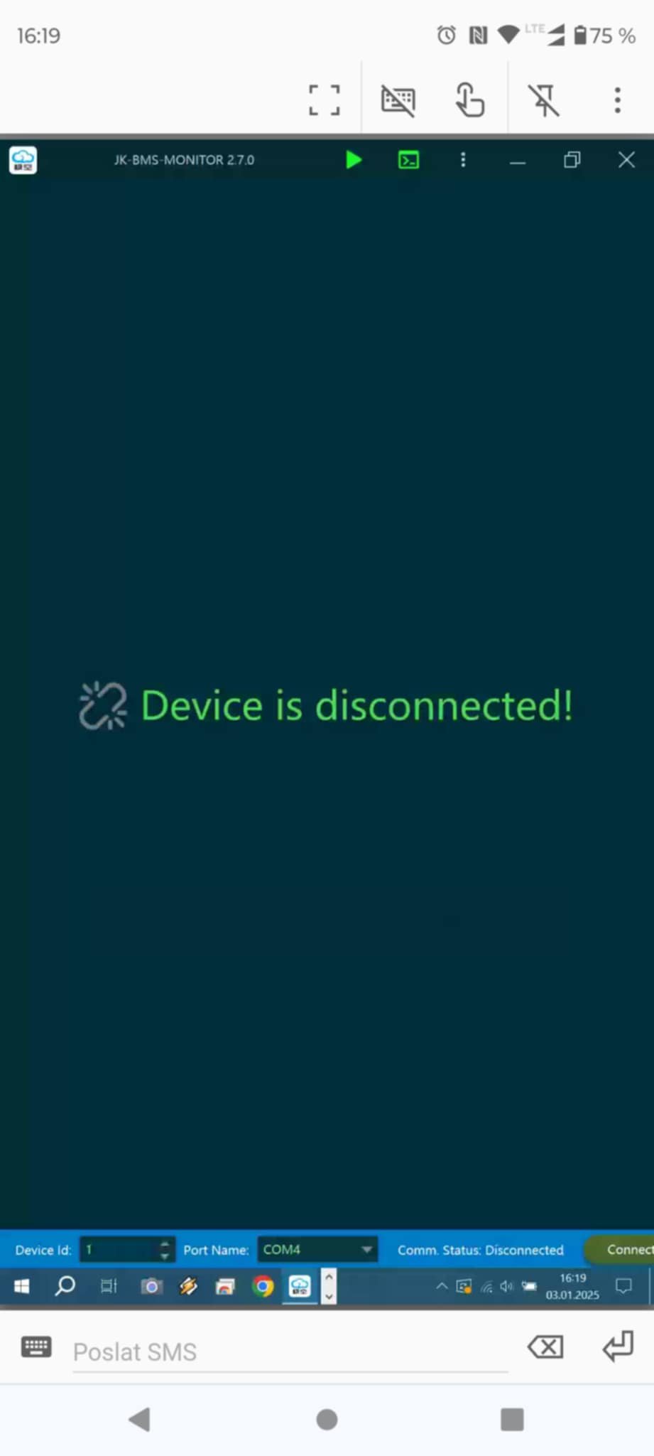 - do testovacího PC jsem nainstaloval JK BMS SW pro ovládání a monitoring