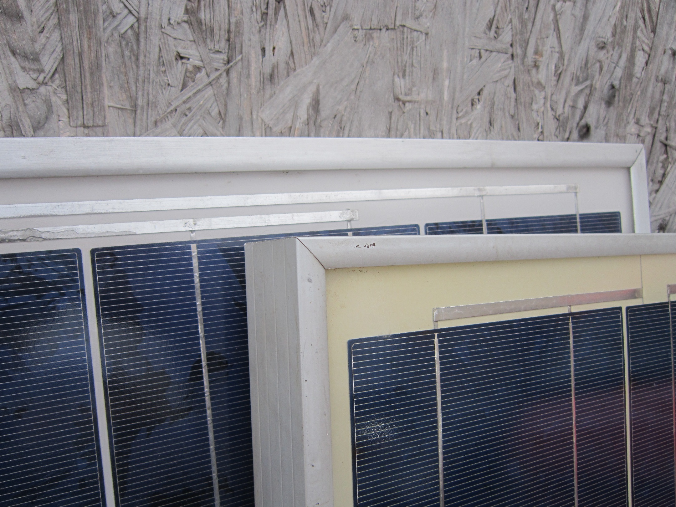 Vlevo 205Wp Moser-Bear Indie (bílý) - vpravo ?210Wp Sopray? Čína (nažloutlé)
