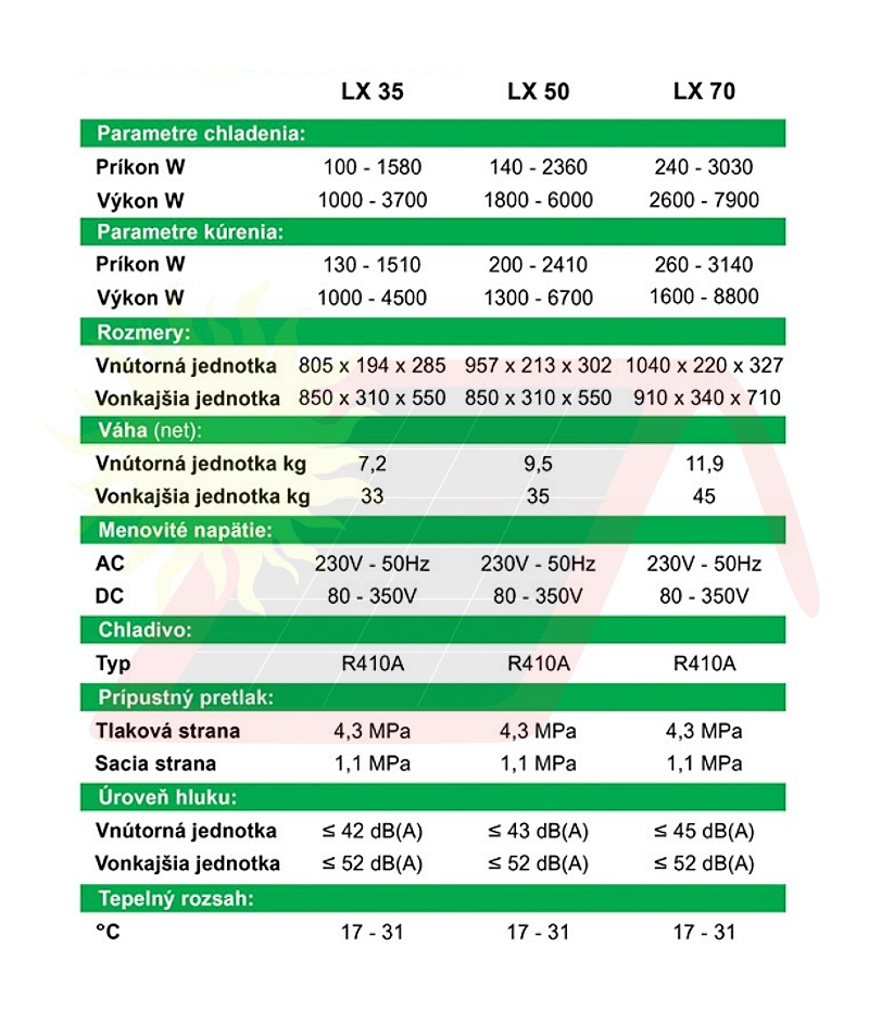O pár příspěvků výše JirkaE přiložil tabulku technické specifikace LX35 a 50. Chybí tam hodnoty EER a COP, tak jsem si o ně napsal výrobci.