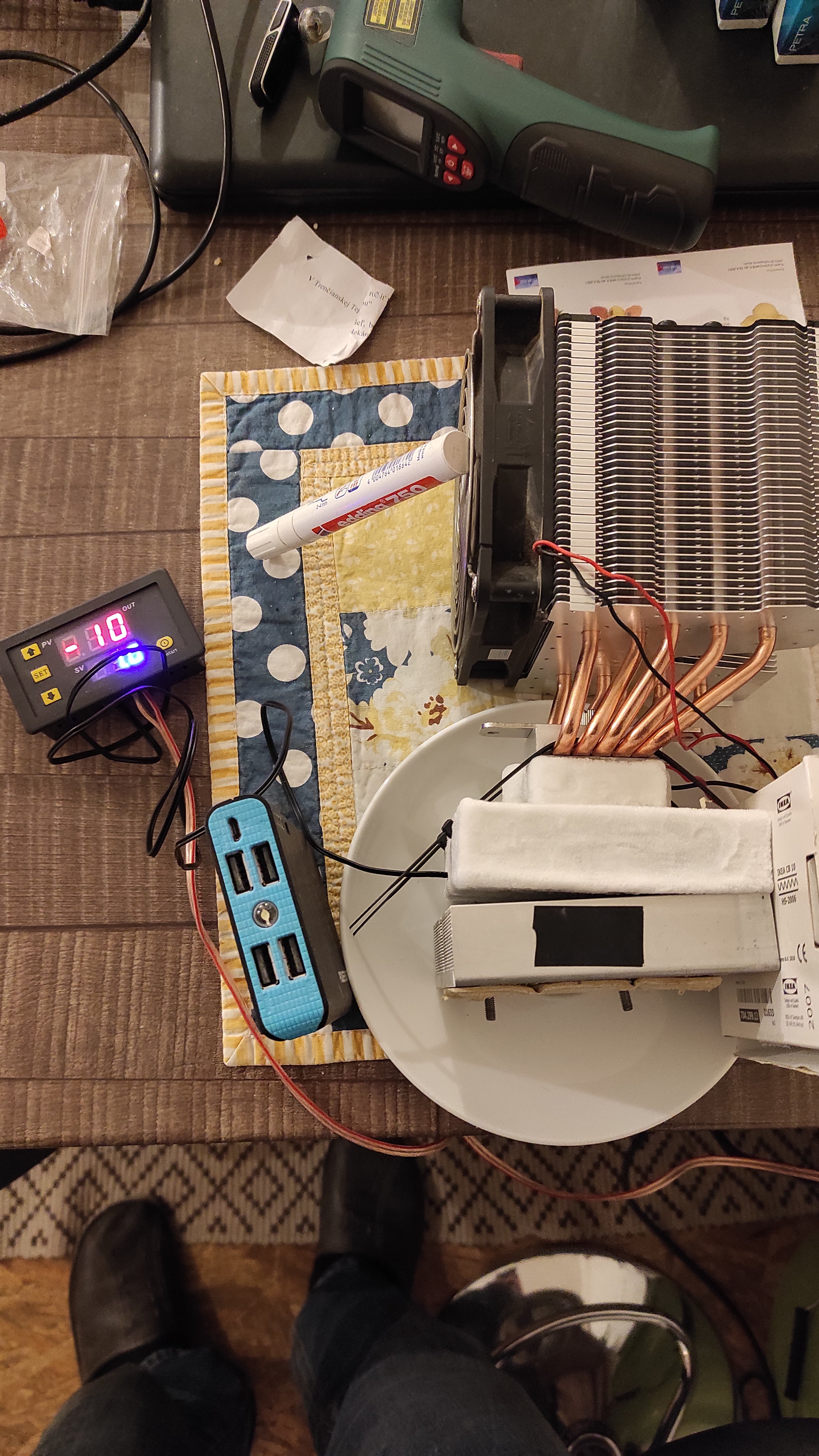 asi po tyzdni nastavovani a merani som nasiel konfiguraciu TEC12715 (ma udavany chladiaci vykon 150-165W pri 15A prikonu), k tomu heat pipe chladic z procaku s 8 trubicami a 120mm ventilatorom, ktorý vie uchladit 250W TDP.