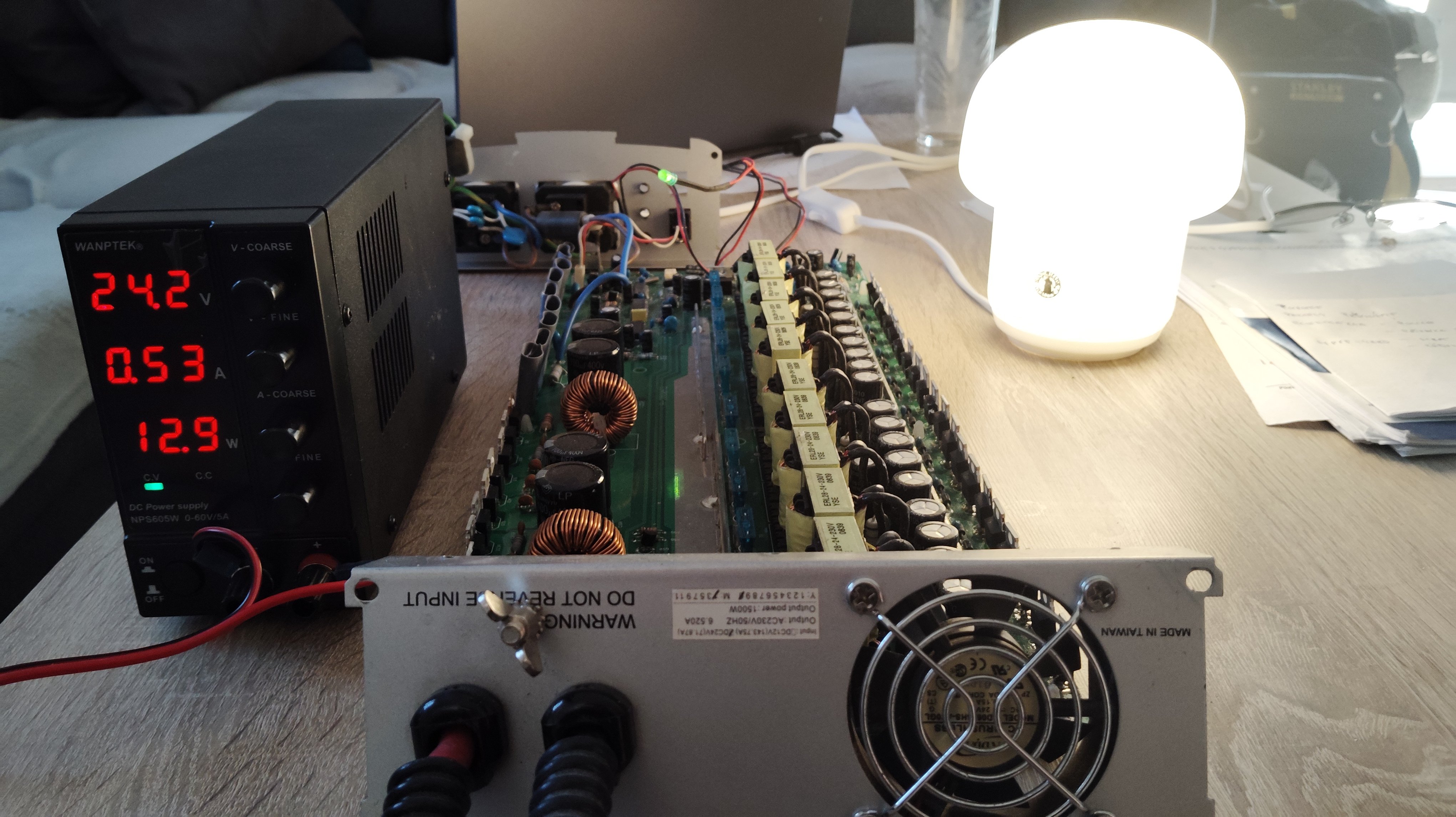 Nicméně tranzistory byly objednány, tak jsem je vyměnil. A měnič vypadá funkční. Jen by potřeboval zamontovat do té pěkné původní skříňky a provézt nějaký zátěžový test, ale já už momentálně žádnou 24V baterku nemám. Musel bych asi nějakou poskládat