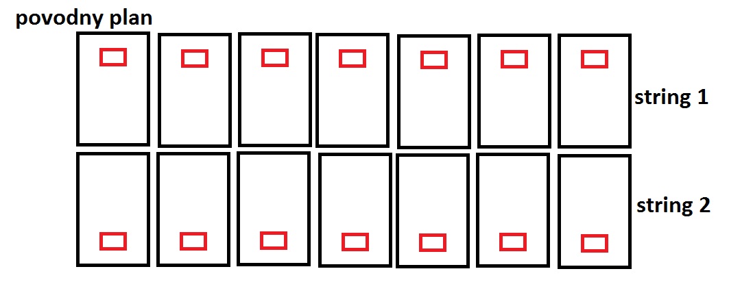 Este taka otazka, ktory sposob ukladania DC kablov je lepsi? Kedze budem mat v rade 7 ks panelov, tak si mozem dovolit ich ulozit takto nejak.. Asi je to najjednoduchsi sposob.. (tj nemam smolu zlozitej strechy, a panely na seba napelim blizko k sebe)