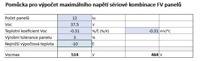A jinak proč výpočet voc v tabulce nesedí je jednoduché protože jsi nezadal správné údaje - například teplotní koeficient asi nemají všechny panely stejný jako ten přednastavený!