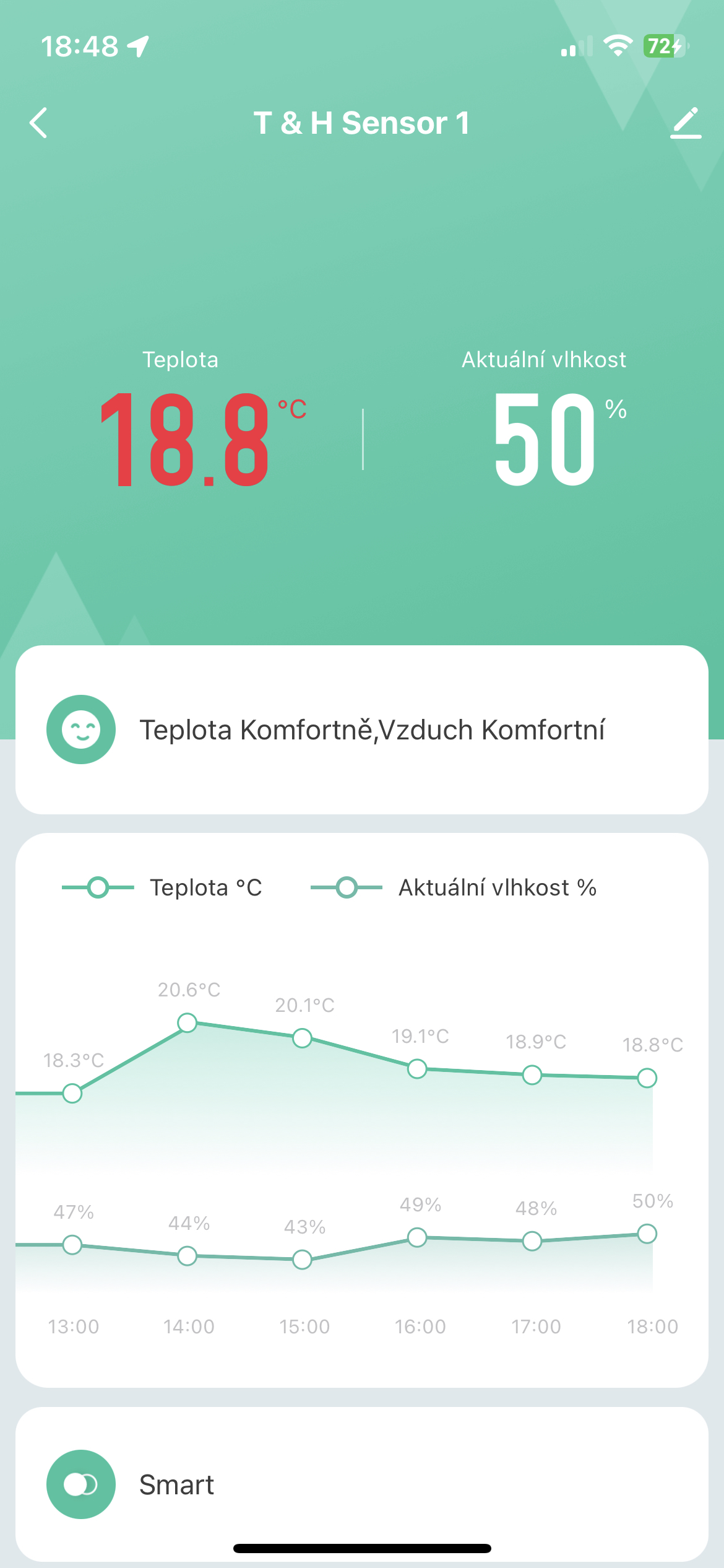 Interperetaci z tuya cloudu asi podrobnejsi nedostanu, vsimnul jsem si ze se to pri zmene parkrat zmenilo, ale loguje to jen hodinove zaznamyskybor píše: úte pro 19, 2023 5:33 pm@Hyp Já nepsal, že to posílá každou sekundu, ale při změně teploty (a ta se u nás fakt nemění každou sekundu). A jak často asi potřebuješ tu teplotu měřit. Ale možná, že u wifi verze je to jinak (wifi je fakt žrout). Já požívám ZigBee.