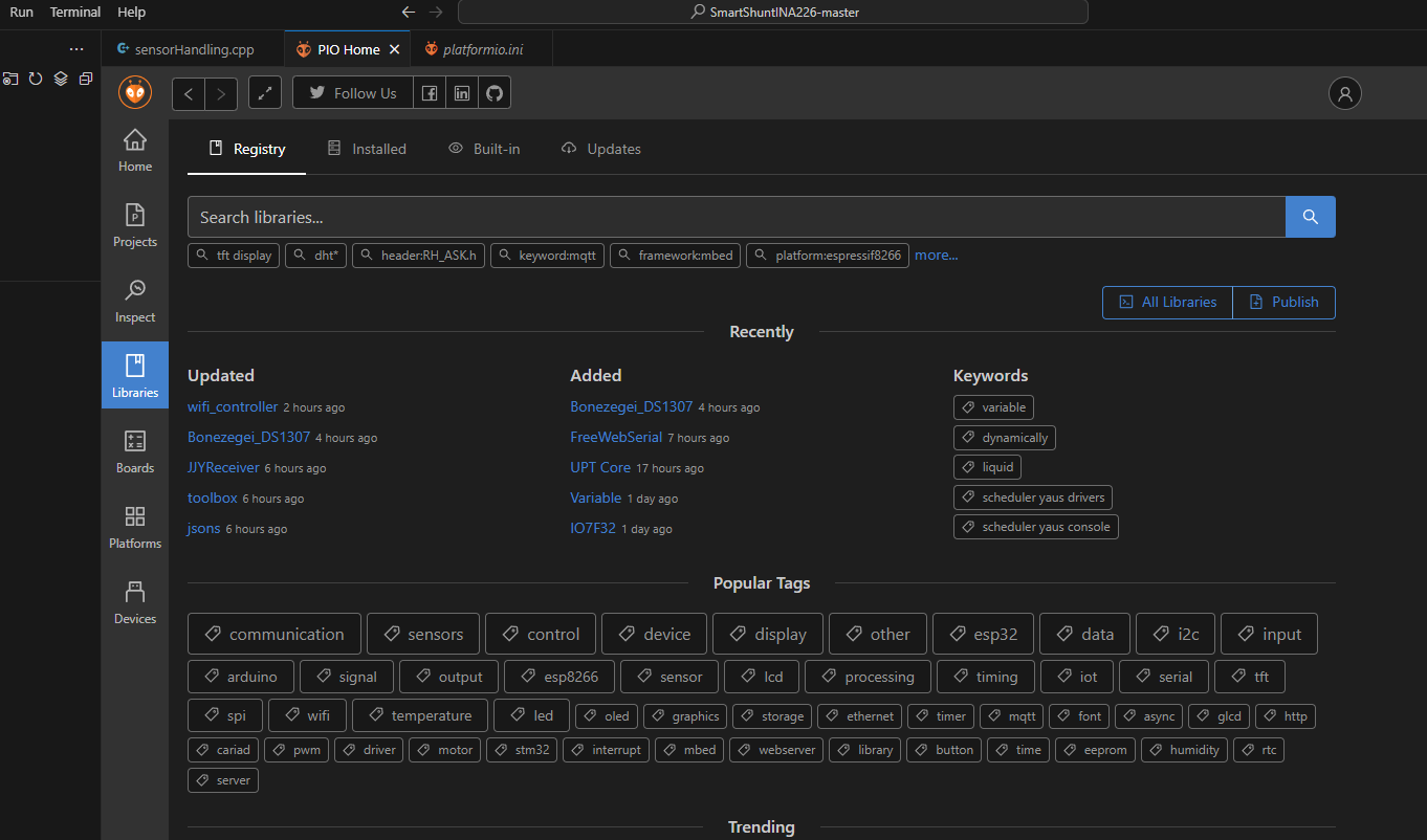 Platformio nabízi starší verzi INA226Lib, která v projektu není použitelná.