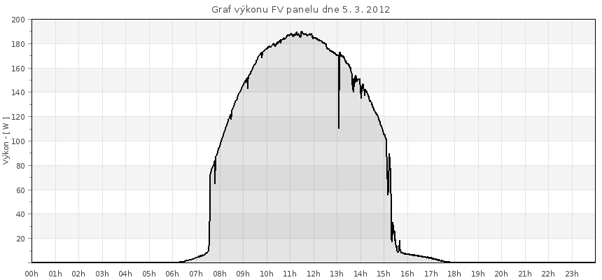 Průběh když je celý den jasno a baterie není plně dobita je zde - http://fv-marsov.humlnet.cz/grafy/fv_p. ... e=20120305 (ten pokles kolem 13h byl asi chyba měření).