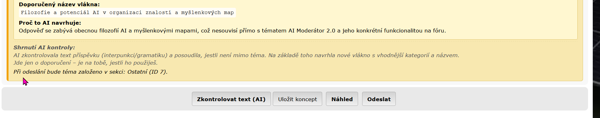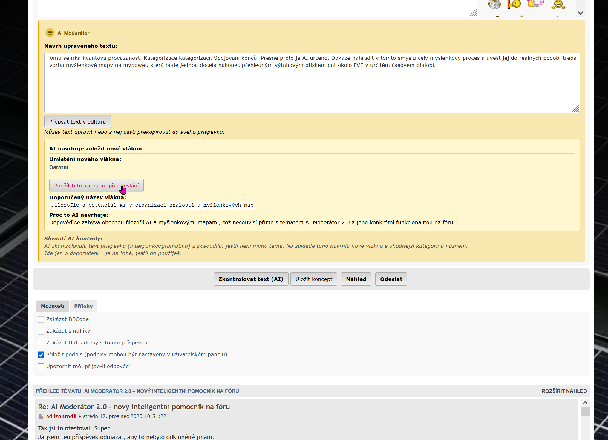 Re: AI Moderátor 2.0 – nový inteligentní pomocník na fóru