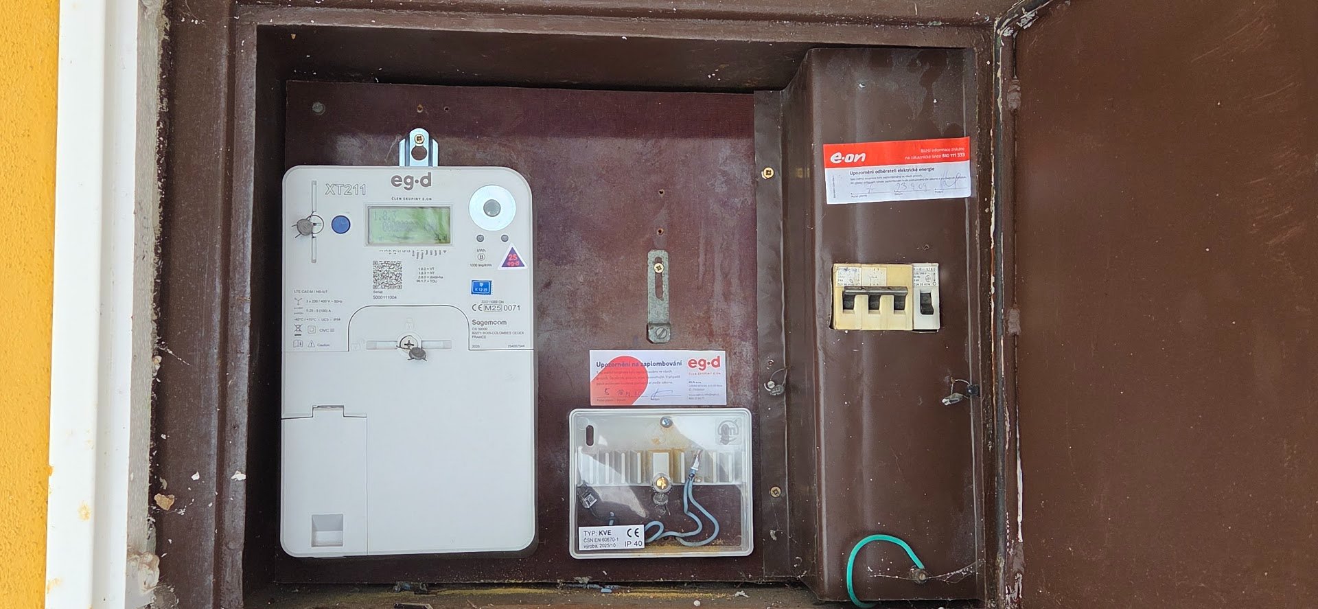 * Ten přichází z externího přijímače HDO (Hromadné dálkové ovládání) – to je ta druhá krabička vedle elektroměru.