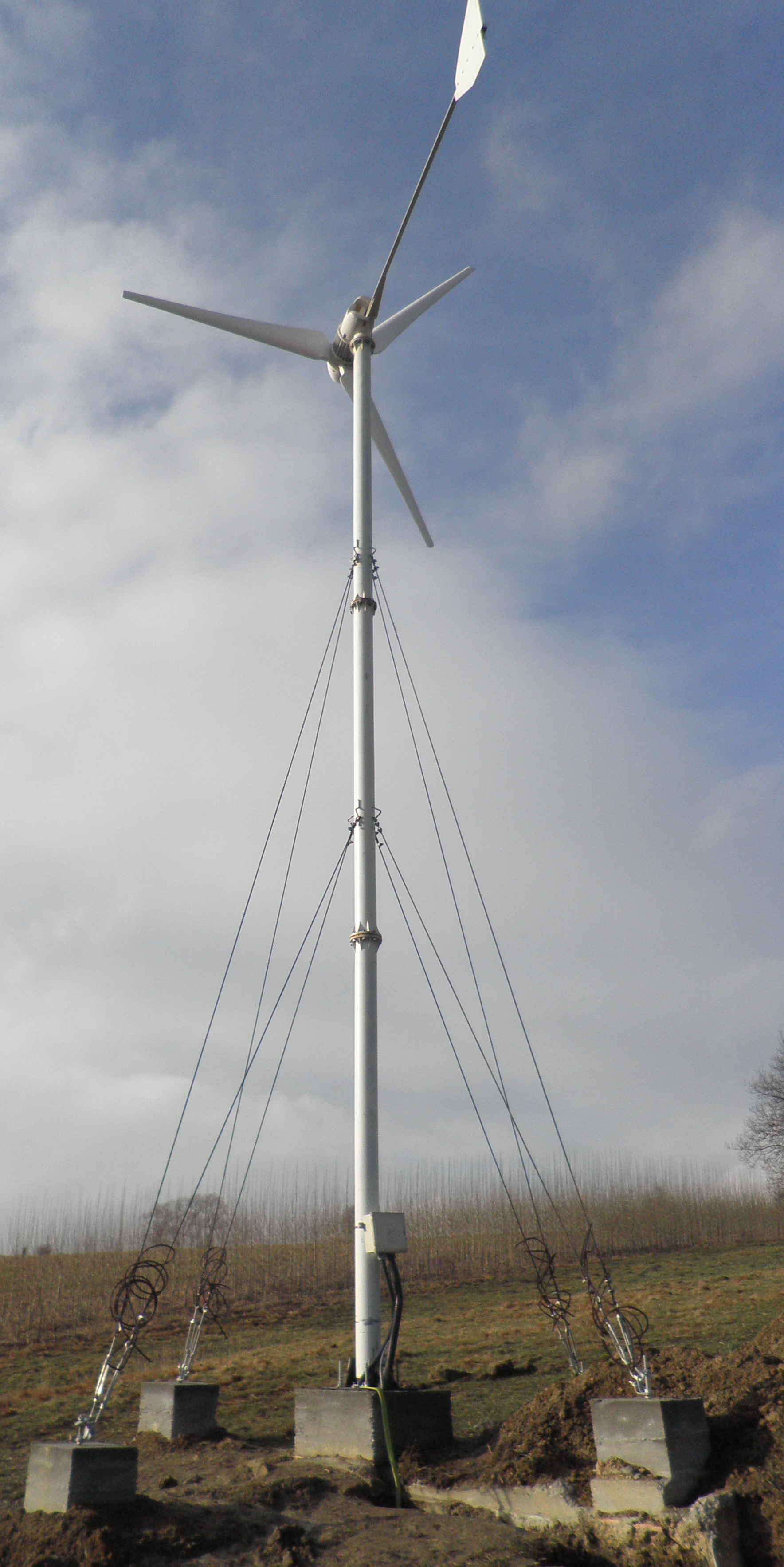 Na větrníku jsem nenašel žádný štítek, vím jen že byl do ČR letecky dopraven z Číny. Vzhledem tomu že váží asi tunu je zajímavé že to nešlo lodí, nebo vlakem. Díly sloupů byly dost dobyté a pokřivené, asi jim to někde spadlo. Klub na kterém sloup drží byl špatně svařený, svářeč to svařoval v kuse a zkroutilo se mu to tak, že tam nešel uchytit sloup. Museli jsme to nechat rozřezat a znovu svařit. Naštěstí generátor a listy vrtule byly v bednách vystlány Čínskými novinami a propagačními letáky