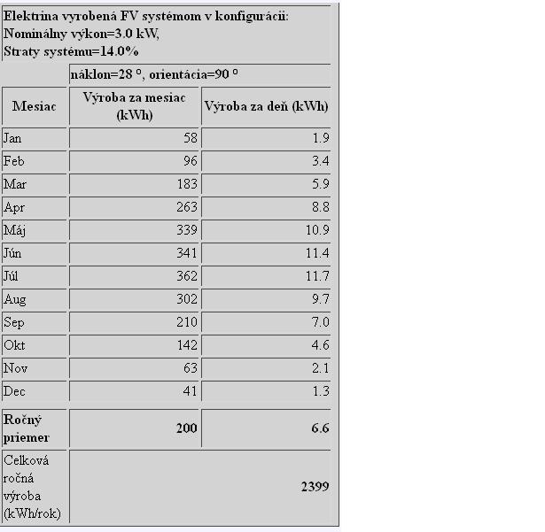 Po zadani souradnic, sklonu strechy a odklonu od jihu mi to na http://sunbird.jrc.it/pvgis/apps/pvest. ... map=europe .. vyplivlo toto: