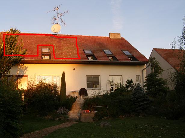 Dnes to vypada na slunecny den, tak jsem rano v 6 h dal do zahrady stativ s fotakem a nastavil automaticke snimani vychodni strechy po 5 minutach, abych mohl vyhodnotit postup slunce po strese a stin od anteny. Zitra nasnimam zapadni strechu.