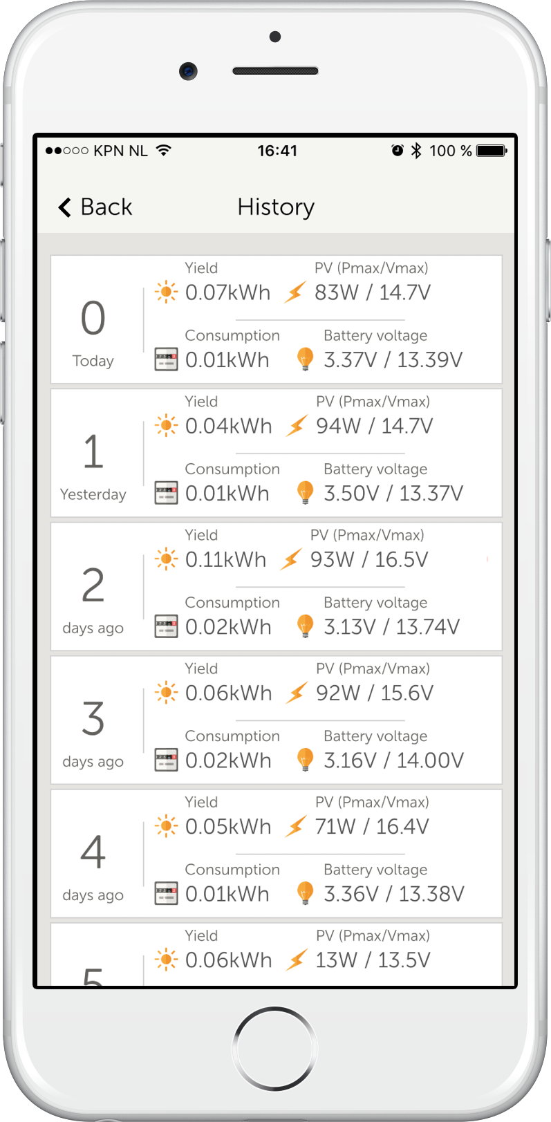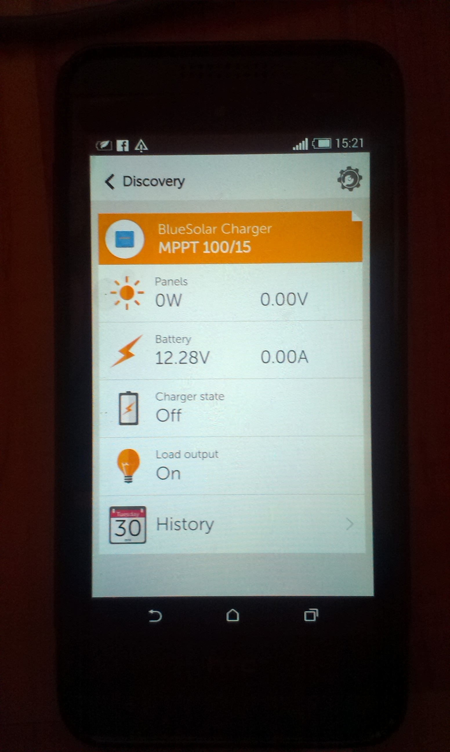 Vyšla nová verzia VICTRON COnnect pre Android telefony. Pripojenie cez bluetooth resp kabel (horeuvedený). Nová verzia umožňuje priamo nastavovať hodnoty regulátora cez túto aplikáciu a zároveň je tam 30 dnova historia po dnoch. Prikladam foto z mojho nepripojeneho regulatora a aj link na software. Snad niekomu pomoze. https://www.victronenergy.com/live/victronconnect:start