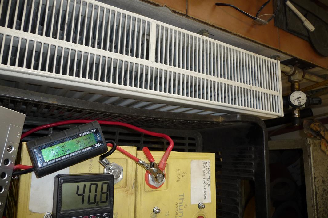 Následovaly testy přímého nabíjení aku - bez reglu . 1. při napětí aku 26,8V (8 článků)
