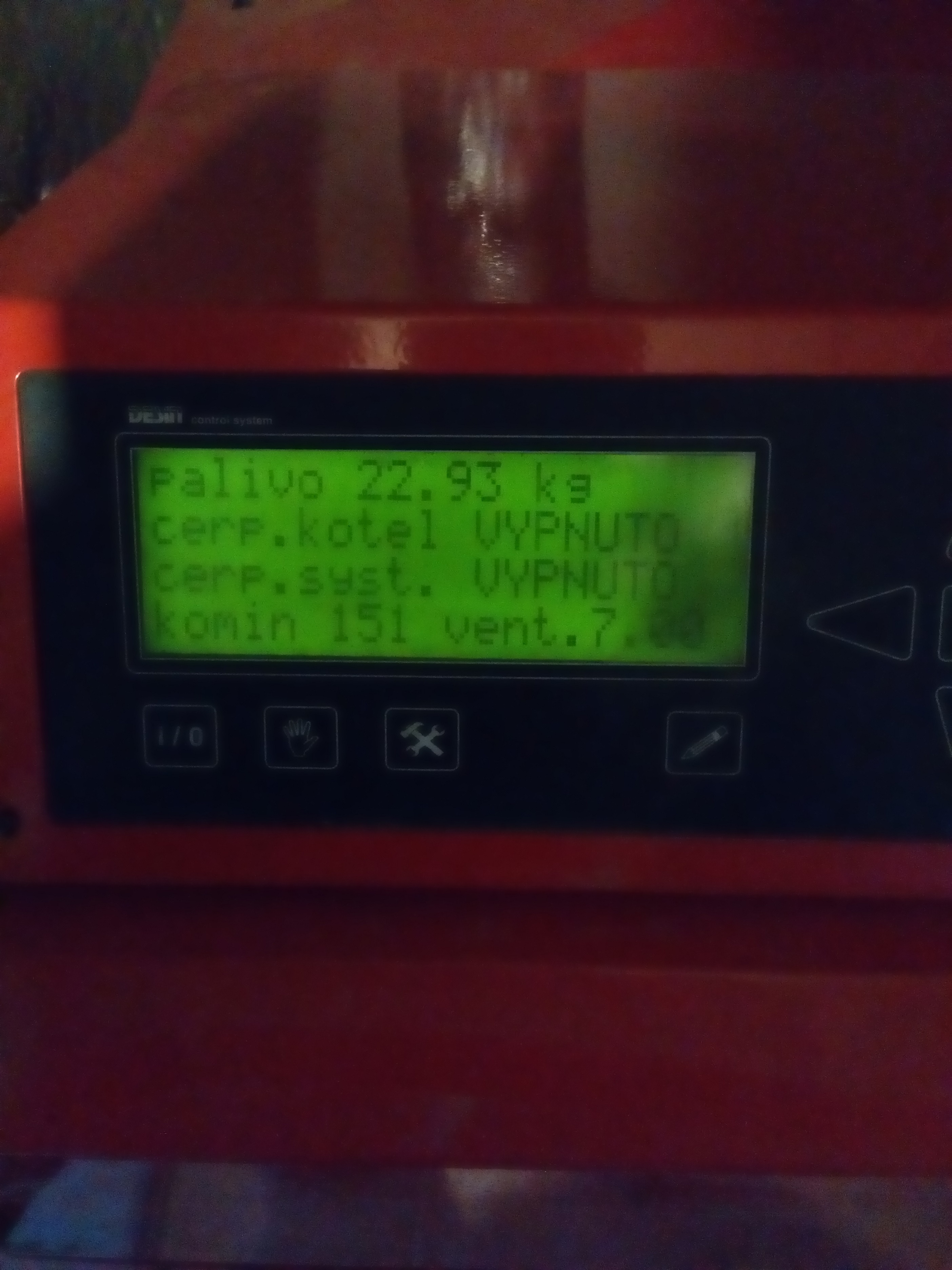 1kg dřeva=4,16kWh hodil jsem jednu nakládku na váhu a naměřil 22,9kg,nyní dokládám ráno 6:00hod,pak 15:00hod naložím na zbylou vrstvu na trysce plnou dávku,pak kolem 22:00hod doložím do plna a ráno je tam v 6:00hod ještě třetina.Venku je teď přez noc -3°C a ve dne 4°C.Samozřejmě z toho je i TUV pro šest lidí,míchané dvě pračky,na přímo dvě myčky.V domu spíná termostat 22°C,vypíná 23°C a setrvačností doběhne 23,5°C.Barabizna má dle jedné výpočtářky TZ 34kW tak jsem ji poděkoval a poslal k šípku s náznakem,že by měla jít znovu do školy