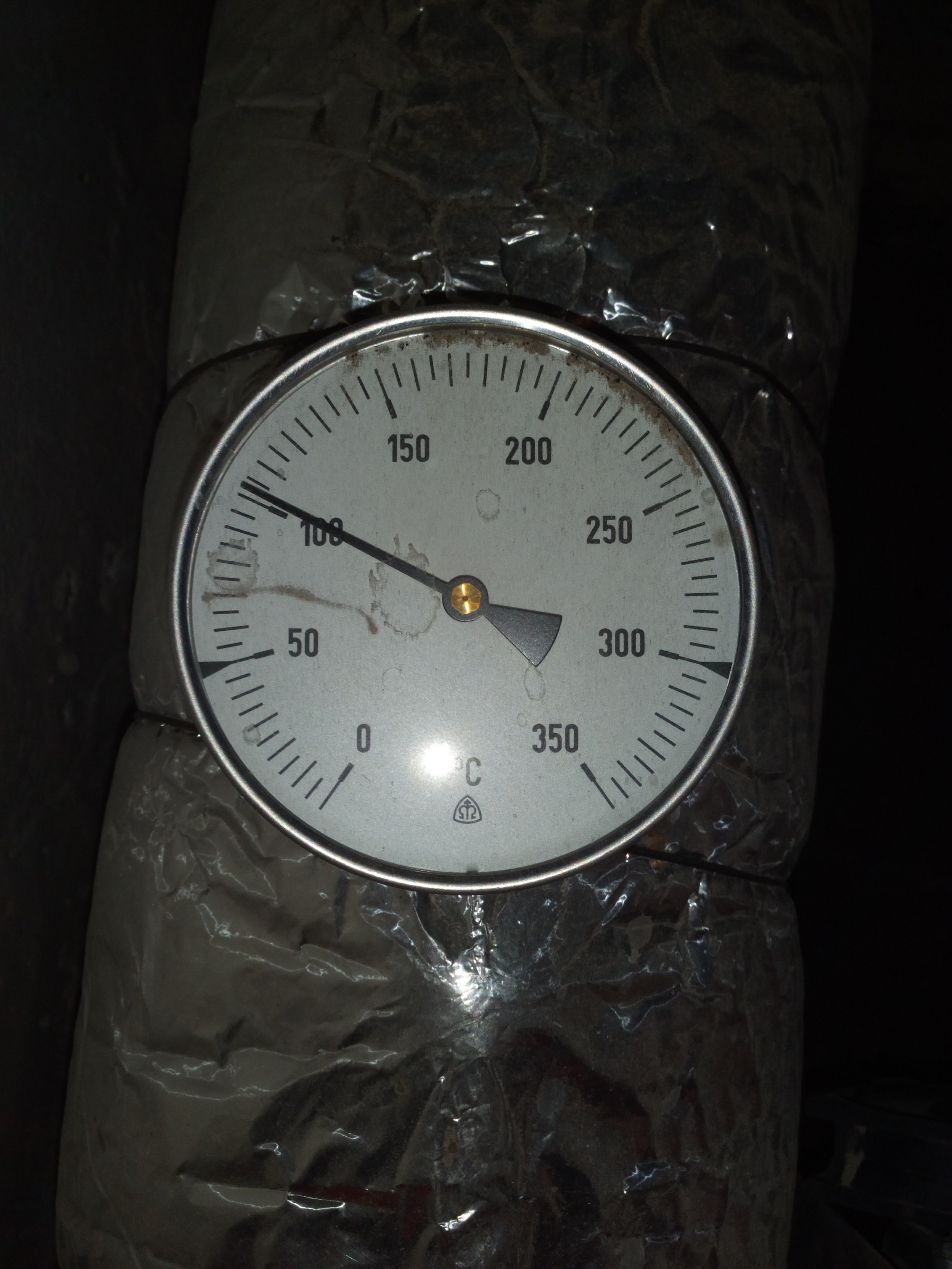 Já nemám problém se snížením teploty do komínu na kotli,ikdyž minimum bude vzhledem k teplotě systému 80-90°C.Ale na konci 12m komínu zděného klasicky z 15cm cihel s výmazem a třema komorama vedle sebe se nebude dít nic pěkného.Skočím tam zítra změřit teplotu na ústí a typuji tam tak 20-30°C,takže i toto zbytkové teplo z kotle je nakonec předáno do domu.Jinak teď jsem byl od 13:30hod naložit ,stav na foto,venku -4°C.