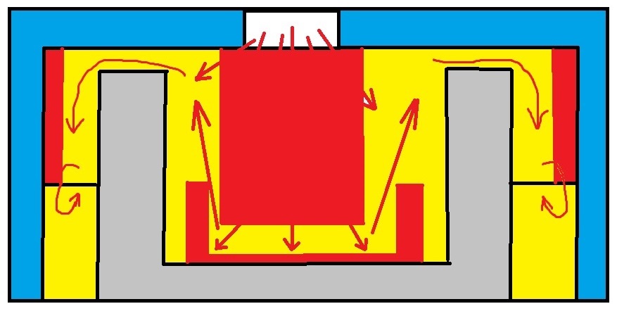 Každopádně bych rád prodloužil trysku a tady mě zajímá přesné složení mixu na ni.Máš něco odzkoušené? Když jsem používal nerez různých tříd tak vydržela pár týdnů a žárobetony moc nesnesou,šamot taky.Pod trysku takový "květináč",který by ji zároveň držel u původního otvoru co nejtěsněji.Ale bude problém s čištěním popela,když bude rožhavená do běla,takže čekat do vychladnutí.Pak ještě strčit na boky pásky do první komory v levo a v pravo.