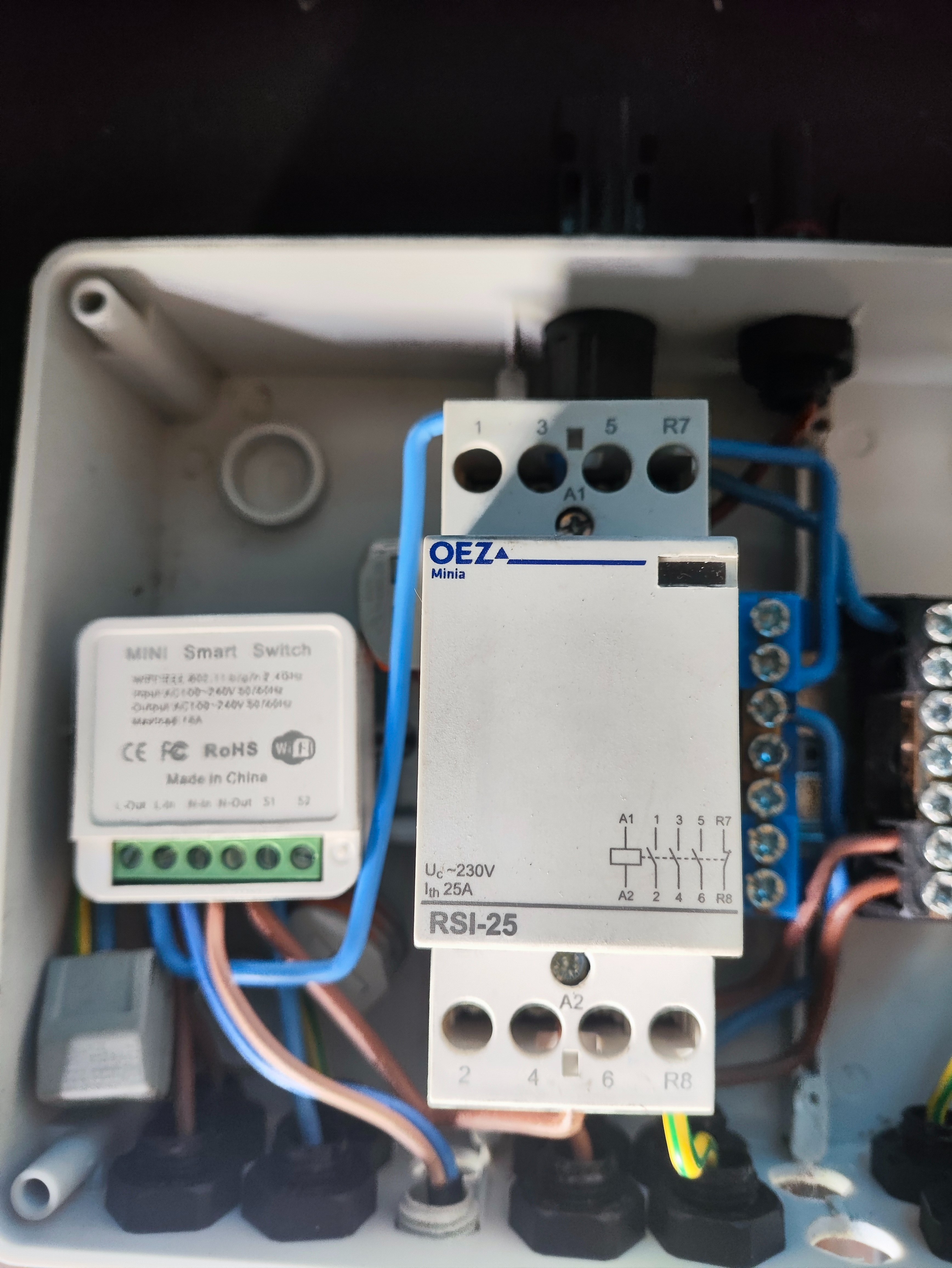 a zapínání stýkače pomocí WiFi Tuya relé a mohu to ovládat i vzdáleně