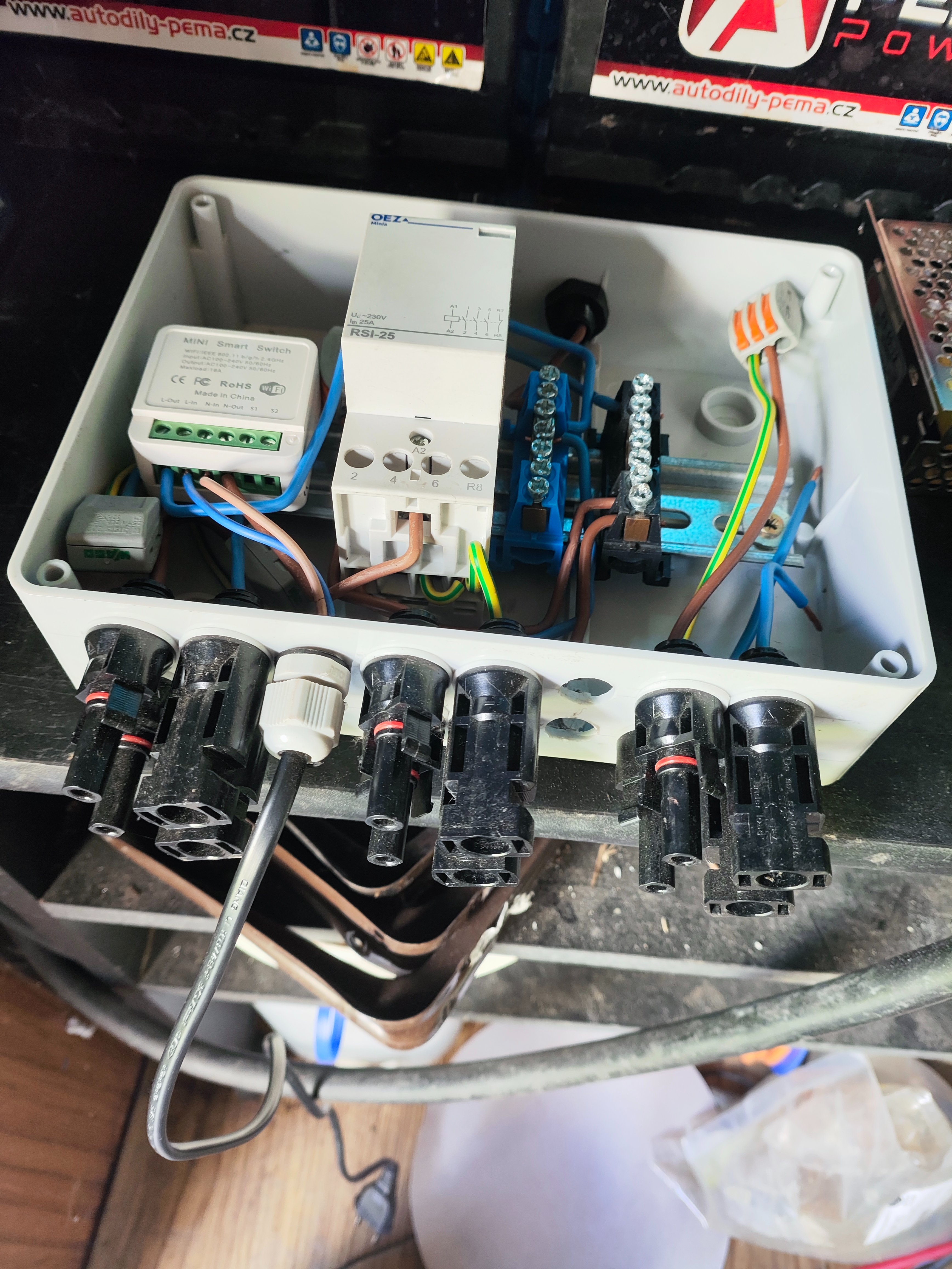 Samozřejmě vím že ten stykač není DC, ale přepínám to ručné (podotýkám) pouze jen když je min. výkon z panelů.