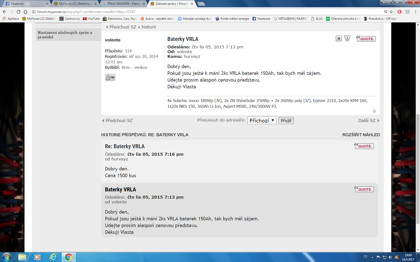 akumulátory. Na názorovém protipolu je argument dalšího ,že zakoupí vše úplně nové na