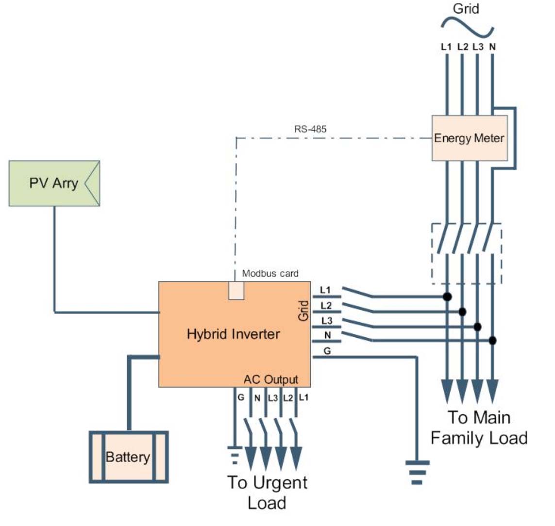 Mezi "To Urgent Load" a "To Main Family Load" je pouze vazební relé 40A a měření.