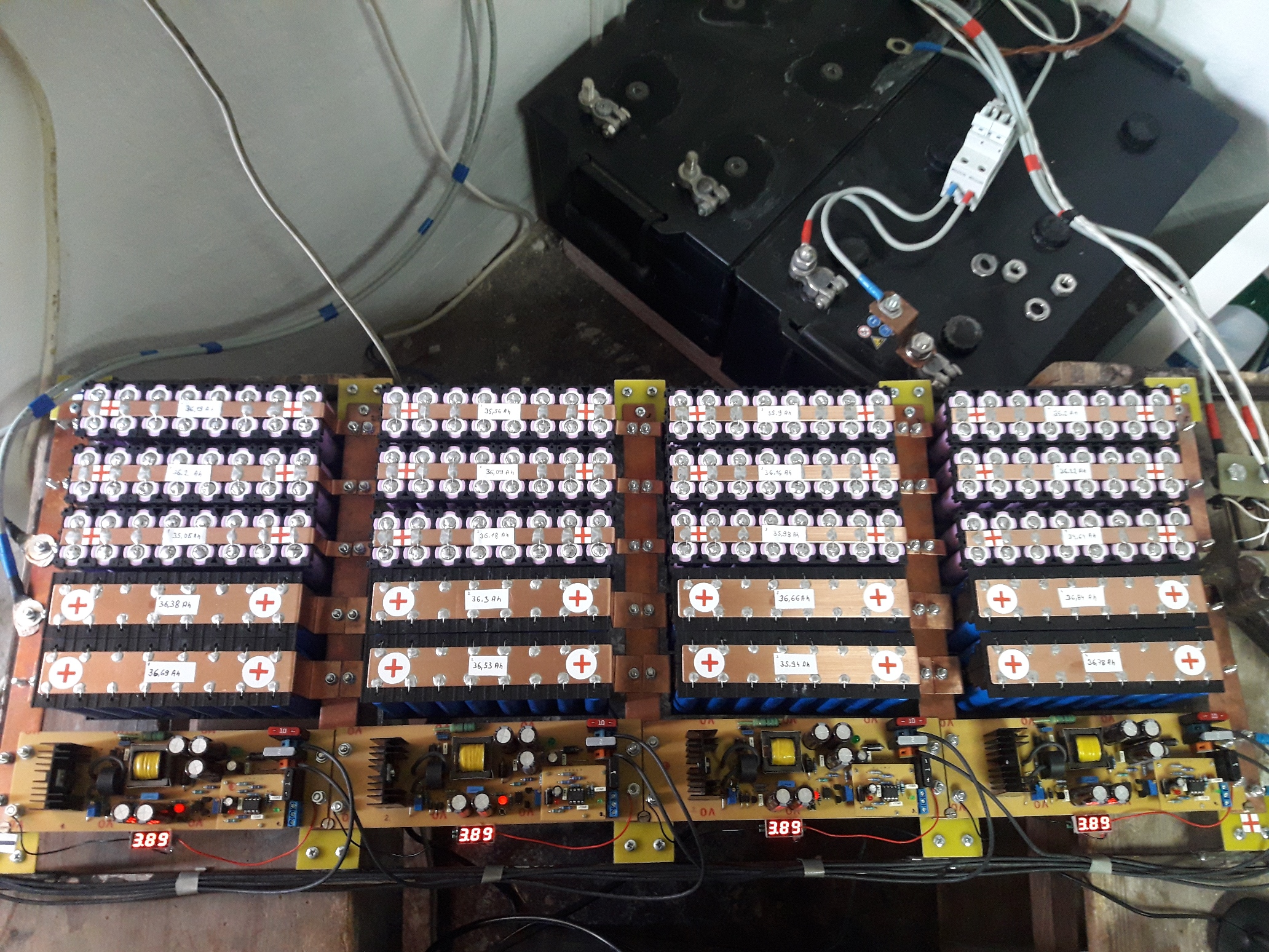 No keď som si ich už vyrobil tak ich tam potom nechám. Batérie ako celok chcem nabíjať na 16,2V, no môj regulátor a jeden 270Wp panel ich nedokáže nabiť na vyššie napätie ako 15,6V.