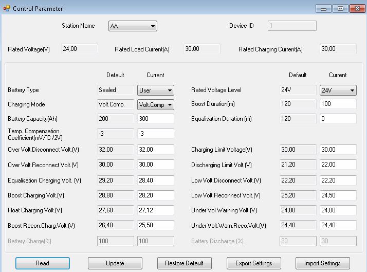 Poprosil by som miestnych odborníkov o kontrolu, resp. pripomienky k nastaveniu parametrov PWM regulátor Epsolar LS3024B.