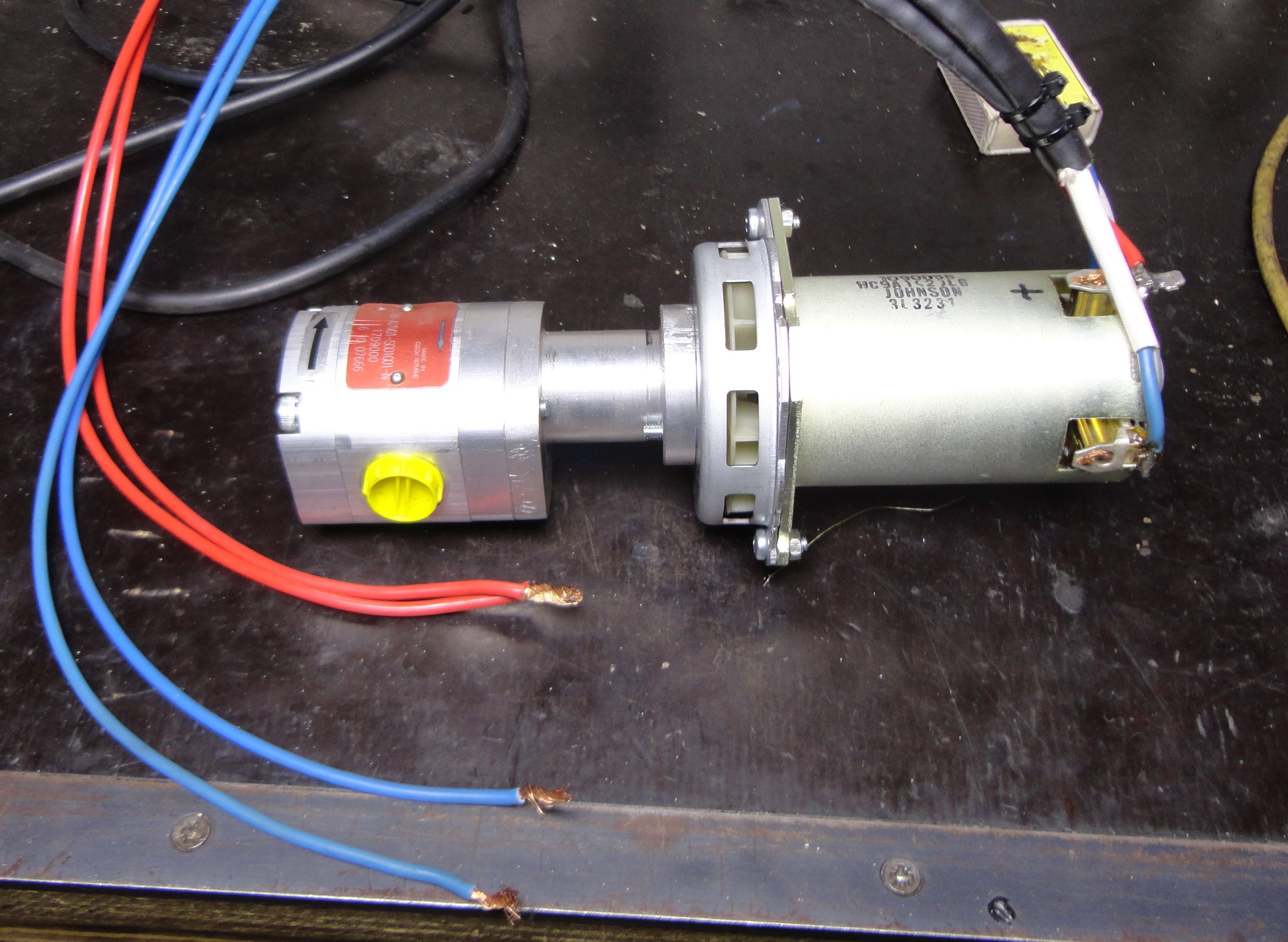 Navíc jak jsem psal, udělal jsem soustrojí s motorkem s PM z akuvrtačky. Zkoušel jsem jej ještě před pořízením čerpadla zatěžovat a zjistil, že na to má. I jsem to v provizorním zapojení vyzkoušel a 1.5t nebyl problém, to jsem měl jako cíl. Dokonce proto že nebyl v okruhu zapojen zpětný ventil, začal olej roztáčet čerpadlo opačným směrem a to do docela slušných otáček. I za tak drsných podmínek po připojení motoru na aku to dal! Určitě Vás napadne: Tak co tady řešíš když to tak báječně funguje